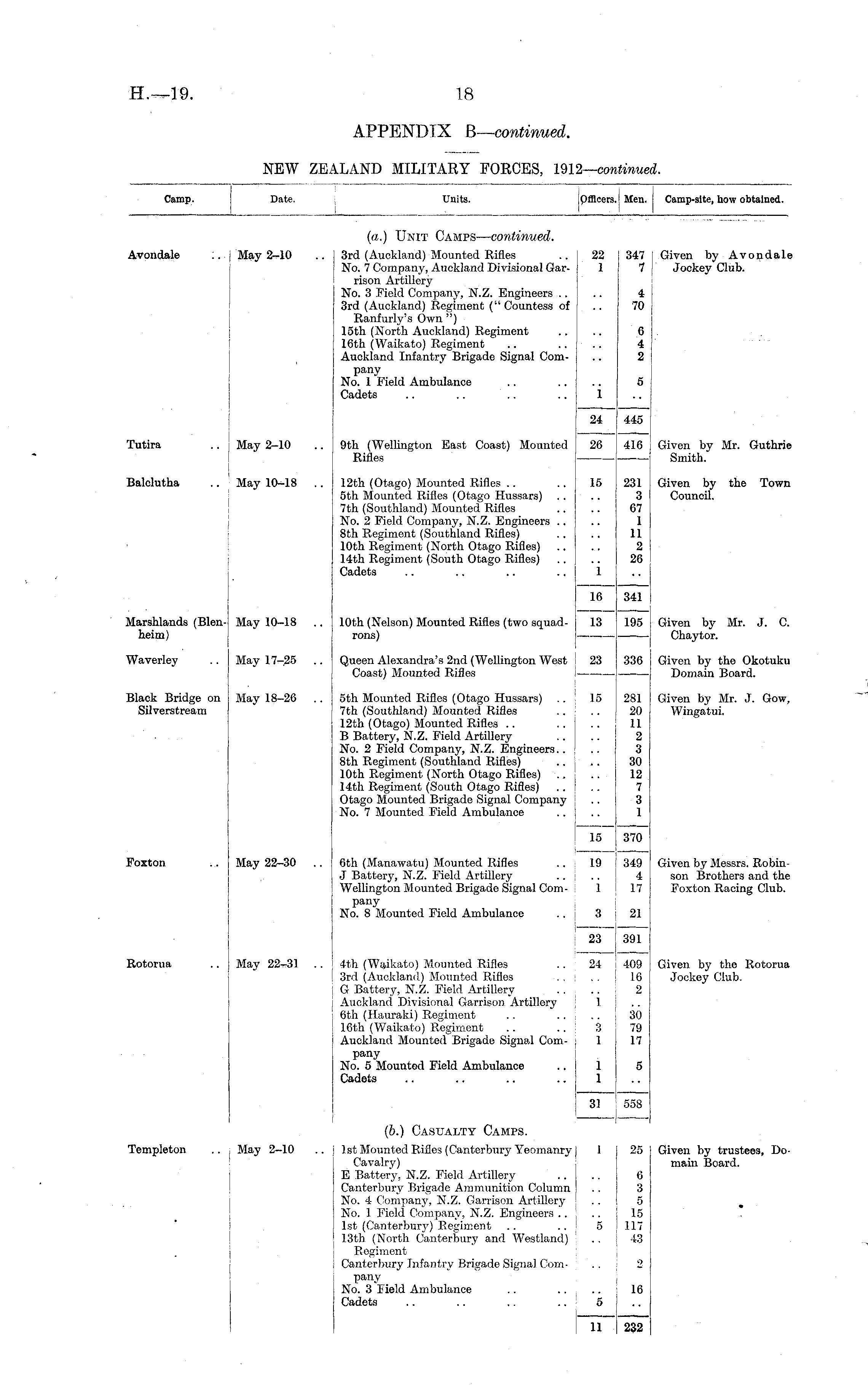 NEW ZEALAND MILITARY FORCES, 1912— continued.