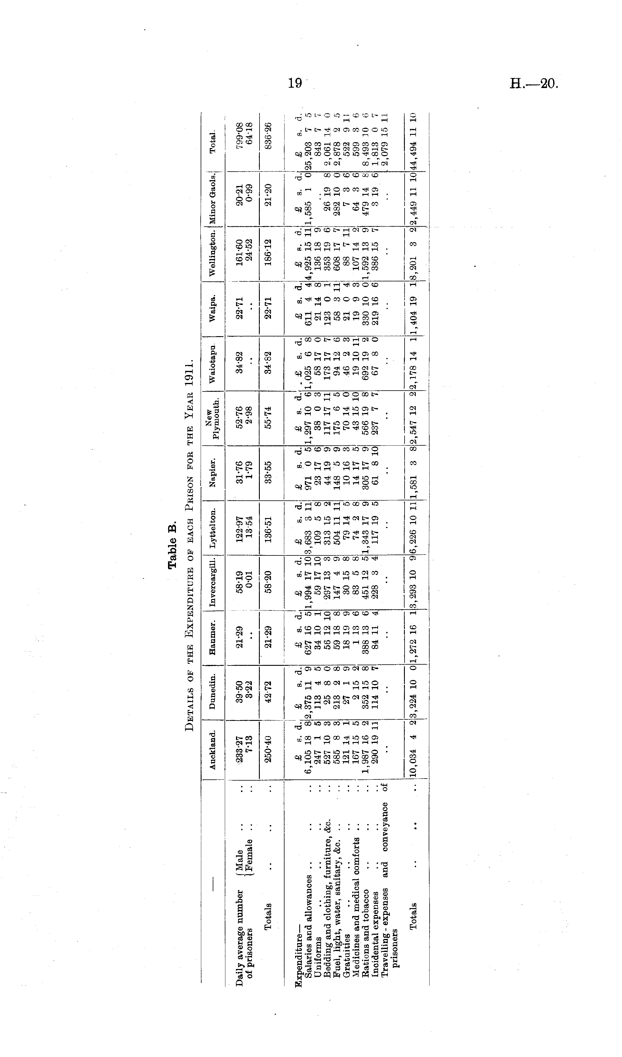 Table B. Details of the Expenditure of each Prison for the Year 1911.
