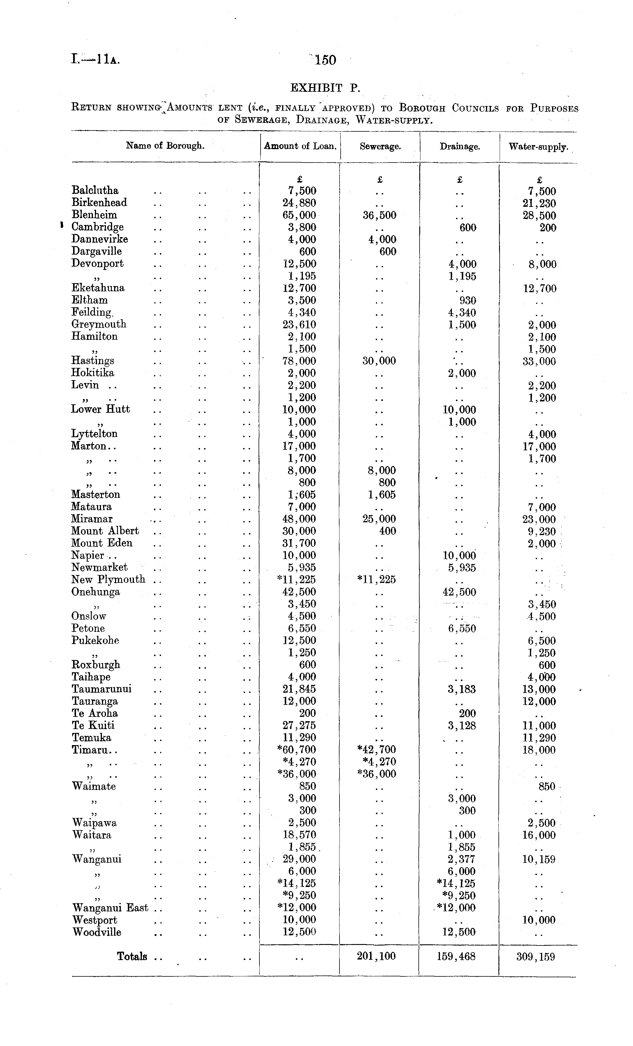 EXHIBIT P. Return showing Amounts lent (i.e., finally approved) to Borough Councils for Purposes of Sewerage, Drainage, Water-supply.