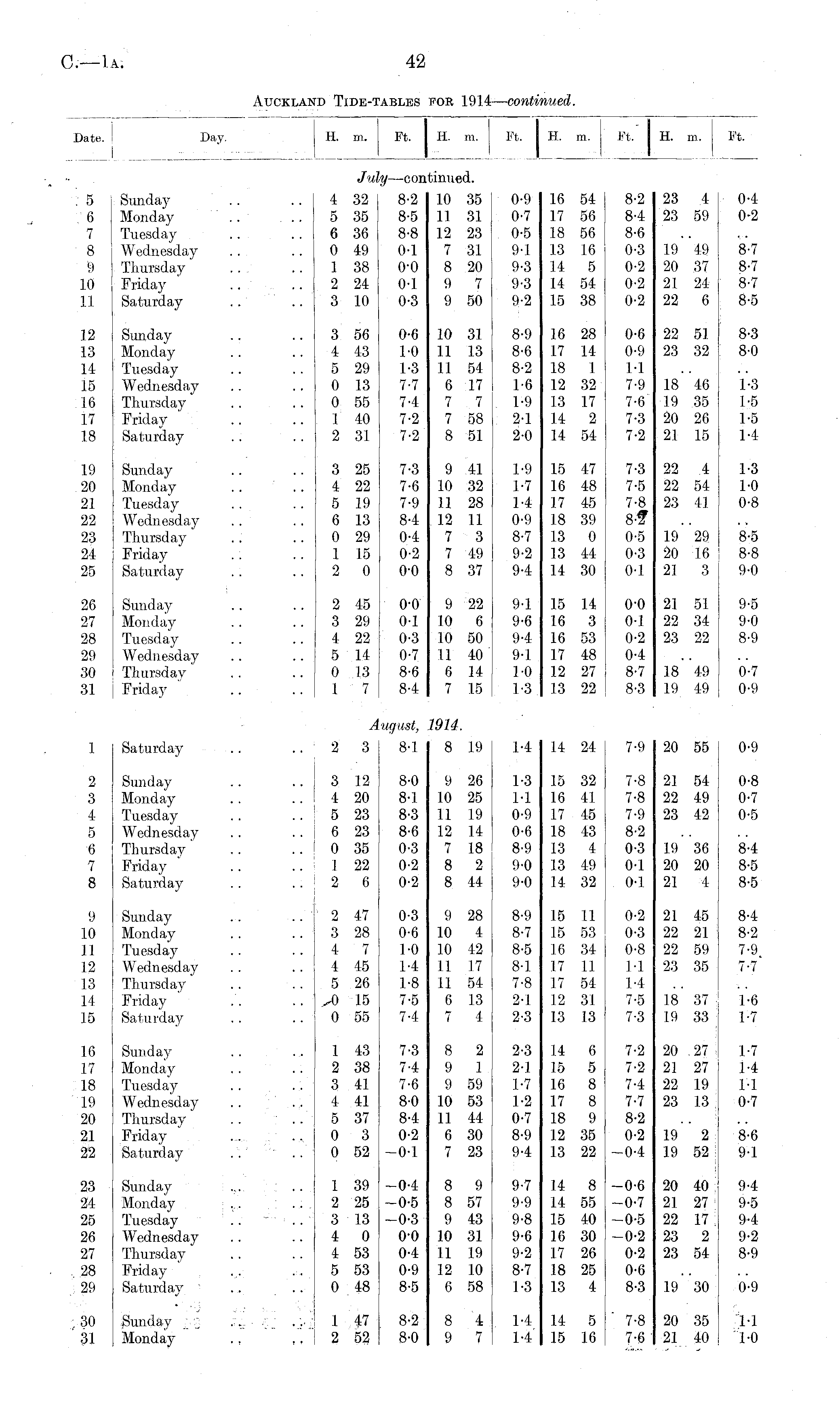Date. Day. H. m. Ft. H. m. Ft, H. m. Ft. H. m. Ft. / n nrt t.i rn i £ .... 4 5 6 0 1 2 3 Jut July 32 35 36 49 38 24 10 \y —continued. I —continue 8-2 10 8-5 11 8-8 12 0-1 7 0-0 8 0-1 9 0-3 9 ed. 35 31 23 31 20 7 50 0-9 0-7 0-5 9-1 9-3 9-3 9-2 16 17 54 56 8-2 23 4 8-4 23 59 0-4 0-2 . 5 6 7 8 9 10 11 Sunday Monday Tuesday Wednesday Thursday Friday Saturday 4 5 6 0 1 2 3 32 35 36 49 38 24 10 8-2 10 35 8-5 11 31 8-8 12 23 0-1 7 31 0-0 8 20 0-1 9 7 0-3 9 50 18 13 14 14 15 16 17 18 13 14 14 15 56 16 5 54 38 54 56 56 16 5 54 38 8-6 0-3 19 49 0-2 20 37 0-2 21 24 0-2 22 6 8-2 8-4 8-6 0-3 0-2 0-2 0-2 8-7 8-7 8-7 8-5 12 13 14 15 16 17 18 Sunday Monday Tuesday Wednesday Thursday Friday Saturday 3 4 5 0 0 1 2 3 4 5 0 0 1 2 56 43 29 13 55 40 31 56 43 29 13 55 40 31 0-6 10 31 1-0 11 13 1-3 11 54 7-7 6 17 7-4 7 7 7-2 7 58 7-2 8 51 0-6 10 1-0 11 1-3 11 7-7 6 7-4 7 7-2 7 7-2 8 31 13 54 17 7 58 51 8-9 8-6 8-2 1-6 1-9 2-1 2-0 16 17 18 12 13 14 14 16 17 18 12 13 14 14 28 14 1 32 17 2 54 28 14 1 32 17 2 54 0-6 22 51 0-9 23 32 1-1 7-9 18 46 7-6 19 35 7-3 20 26 7-2 21 15 0-6 0-9 1-1 7-9 7-6 7-3 7-2 8-3 8-0 1-3 1-5 1-5 1-4 19 20 21 22 23 24 25 Sunday Monday Tuesday Wednesday Thursday Friday Saturday 3 4 5 6 0 1 2 3 4 5 6 0 1 2 25 22 19 13 29 15 0 25 22 19 13 29 15 0 7-3 9 41 7-6 10 32 7-9 11 28 8-4 12 11 0-4 7 3 0-2 7 49 0-0 8 37 7-3 9 7-6 10 7-9 11 8-4 12 0-4 7 0-2 7 0-0 8 41 32 28 11 3 49 37 1-9 1-7 1-4 0-9 8-7 9-2 9-4 15 16 17 18 13 13 14 15 16 17 18 13 13 14 47 48 45 39 0 44 30 47 48 45 39 0 44 30 7-3 22 4 7-5 22 54 7-8 23 41 n ■ 8-f 0-5 19 29 0-3 20 16 0-1 21 3 7-3 7-5 7-8 8-f 0-5 0-3 0-1 1-3 1-0 0-8 8-5 8-8 9-0 26 27 28 29 30 31 Sunday Monday Tuesday Wednesday Thursday Friday 2 3 4 5 0 1 2 3 4 5 0 1 45 29 22 14 13 7 45 29 22 14 13 7 0-0 9 22 0-1 10 6 0-3 10 50 0-7 11 40 8-6 6 14 8-4 7 15 0-0 9 0-1 10 0-3 10 0-7 11 8-6 6 8-4 7 22 6 50 40 14 15 9-1 9-6 9-4 9-1 1-0 1-3 15 16 16 15 16 16 17 12 13 14 3 53 14 3 53 48 27 22 0-0 21 51 0-1 22 34 0-2 23 22 o-o 0-1 0-2 0-4 8-7 8-3 9-5 9-0 8-9 17 12 13 48 27 22 0-4 8-7 18 49 8-3 19 49 0-7 0-9 Saturday 2 A 3 iugust, 1914. 14 14 24 24 7-9 20 55 7-9 0-9 1 2 -o.t. 3 8-1 8 19 8-1 8 19 1-4 2 3 4 5 6 7 8 Sunday Monday Tuesday Wednesday Thursday Friday Saturday 3 4 5 6 0 1 2 3 4 5 6 0 1 2 12 20 23 23 35 22 6 12 20 23 23 35 22 6 8-0 9 26 8-1 10 25 8-3 11 19 8-6 1.2 14 0-3 7 18 0-2 8 2 0-2 8 44 8-0 9 8-1 10 8-3 11 8-6 12 0-3 7 0-2 8 0-2 8 26 25 19 14 18 2 44 1-3 1-1 0-9 0-6 8-9 9-0 9-0 15 16 17 18 13 13 14 15 16 17 18 13 13 14 32 41 45 43 4 49 32 32 41 45 43 4 49 32 7-8 21 54 7-8 22 49 7-9 23 42 8-2 0-3 19 36 0-1 20 20 0-1 21 4 7-8 7-8 7-9 8-2 0-3 0-1 0-1 0-8 0-7 0-5 8-4 8-5 8-5 9 10 11 12 13 14 15 Sunday Monday Tuesday Wednesday Thursday Friday Saturday 2 3 4 4 5 0 2 3 4 4 5 J) 0 47 28 7 45 26 15 55 47 28 7 45 26 15 55 0-3 9 28 0-6 10 4 1-0 10 42 1-4 11 17 1-8 11 54 7-5 6 13 7-4 7 4 0-3 9 0-6 10 1-0 10 1 -4 11 1-8 11 7-5 6 7-4 7 28 4 42 17 54 13 4 8-9 8-7 8-5 8-1 7-8 2-1 2-3 15 15 16 17 15 15 16 17 17 12 13 11 53 34 11 11 53 34 11 54 31 13 0-2 21 45 0-3 22 21 ! 0-8 22 59 1-1. 23 35 0-2 0-3 0-8 1-1 1-4 7-5 7-3 8-4 8-2 7-9, 7-7 17 12 13 54 31 13 1-4 7-5 18 37 7-3 19 33 1-6 1-7 16 17 18 19 20 21 22 Sunday Monday Tuesday Wednesday ThursdayFriday Saturday 1 2 3 4 5 0 0 1 2 3 4 5 0 0 43 38 41 41 37 3 52 - 43 38 41 41 37 3 52 7-3 8 2 7-4 9 1 7-6 9 59 8-0 10 53 8-4 11 44 0-2 6 30 -0-1 7 23 7-3 8 7-4 9 7-6 9 8-0 10 8-4 11 0-2 6 -0-1 7 2 1 59 53 44 30 23 2-3 2-1 1-7 1-2 0-7 8-9 9-4 14 15 16 17 14 15 16 17 18 12 13 6 5 8 8 6 5 8 8 9 35 22 7-2 20 27 7-2 21 27 7-4 22 19 7-7 23 13 7-2 7-2 7-4 7-7 8-2 0-2 -0-4 1-7 1-4 1-1 0-7 18 12 13 9 35 22 8-2 0-2 19 2 -0-4 19 52 8-6 9-1 23 24 25 26 27 28 29 Sunday Monday Tuesday Wednesday Thursday Friday Saturday 1 2 3 4 4 5 0 1 2 3 4 4 5 0 39 - 25 - 13 - 0 53 53 48 39 25 13 0 53 53 48 -0-4 8 9 -0-5 8 57 -0-3 9 43 0-0 10 31 0-4 11 19 0-9 12 10 8-5 6 58 -0-4 8 -0-5 8 -0-3 9 0-0 10 0-4 11 0-9 12 8-5 6 9 57 43 31 19 10 58 9-7 9-9 9-8 9-6 9-2 8-7 1-3 14 14 15 16 17 14 14 15 16 17 18 13 8 55 40 30 26 8 55 40 30 26 25 4 -0-6 20 40 -0-7 21 27 -0-5 22 17 -0-2 23 2 0-2 23 54 -0-6 -0-7 -0-5 -0-2 0-2 0-6 8-3 9-4 9-5 9-4 9-2 8-9 18 13 25 4 0-6 8-3 19 30 0-9 .30 ' 31 Sunday ;.-3 Monday 1 2 1 2 47 52 47 52 8-2 8 4 8-0 9 7 8-2 8 8-0 9 4 7 1-4 1-4 14 15 14 15 5 16 5 16 7-8 20 35 7-6 2.1 40 7-8 7-6 1-1 1-0