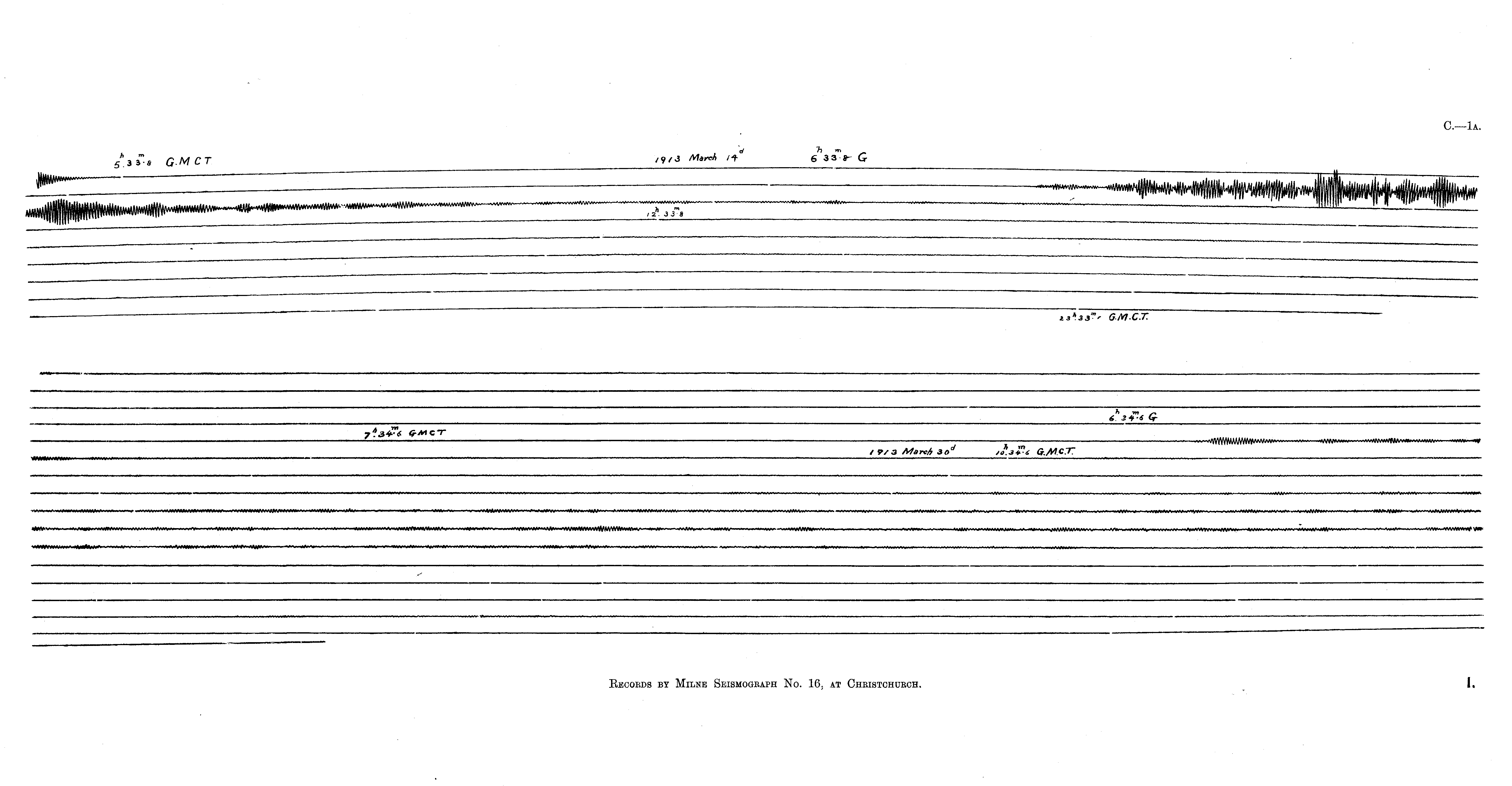 Records by Milne Seismograph No. 16, at Christchurch.