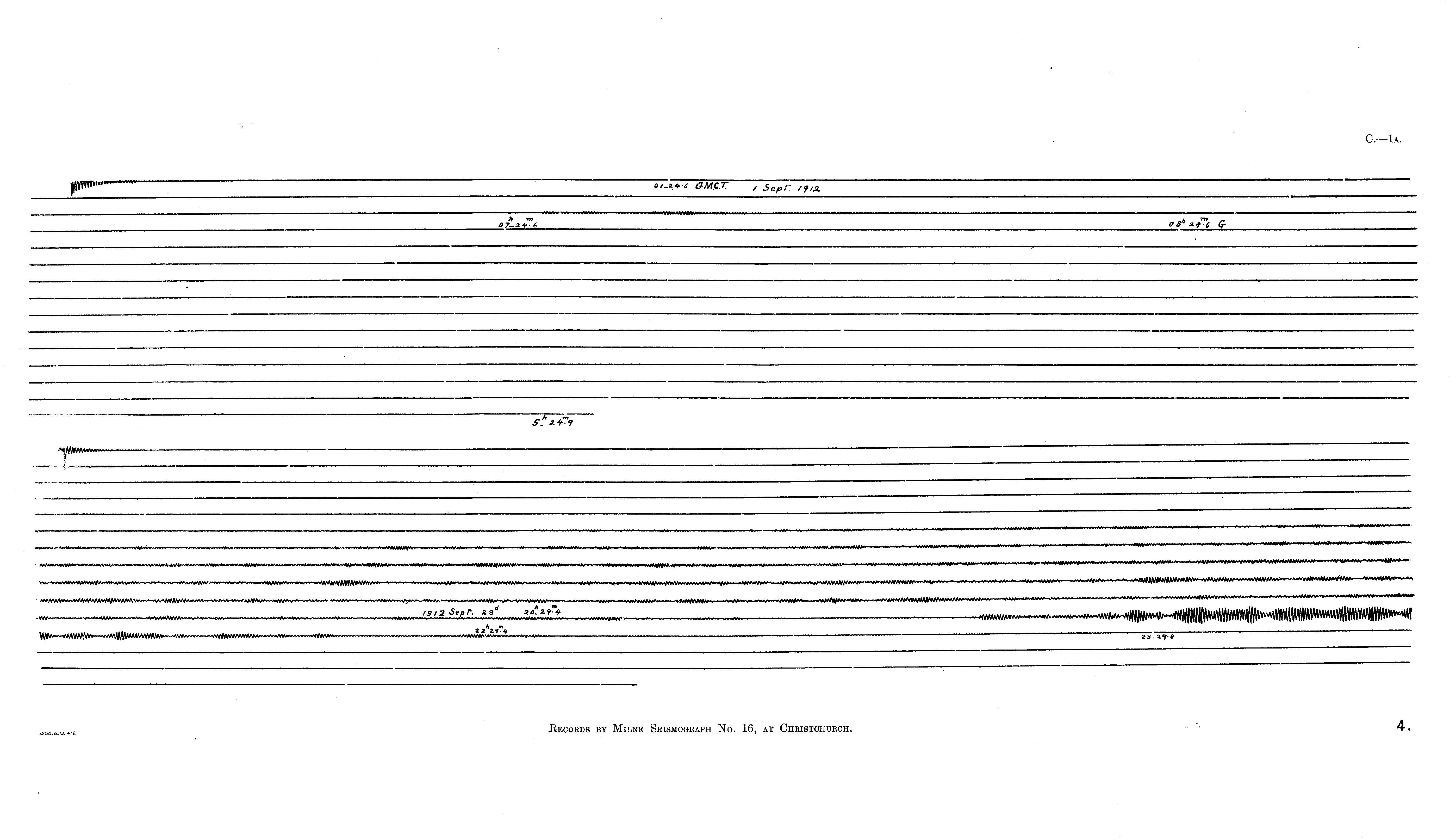 Records by Milne Seismograph No. 16, at Christchurch.