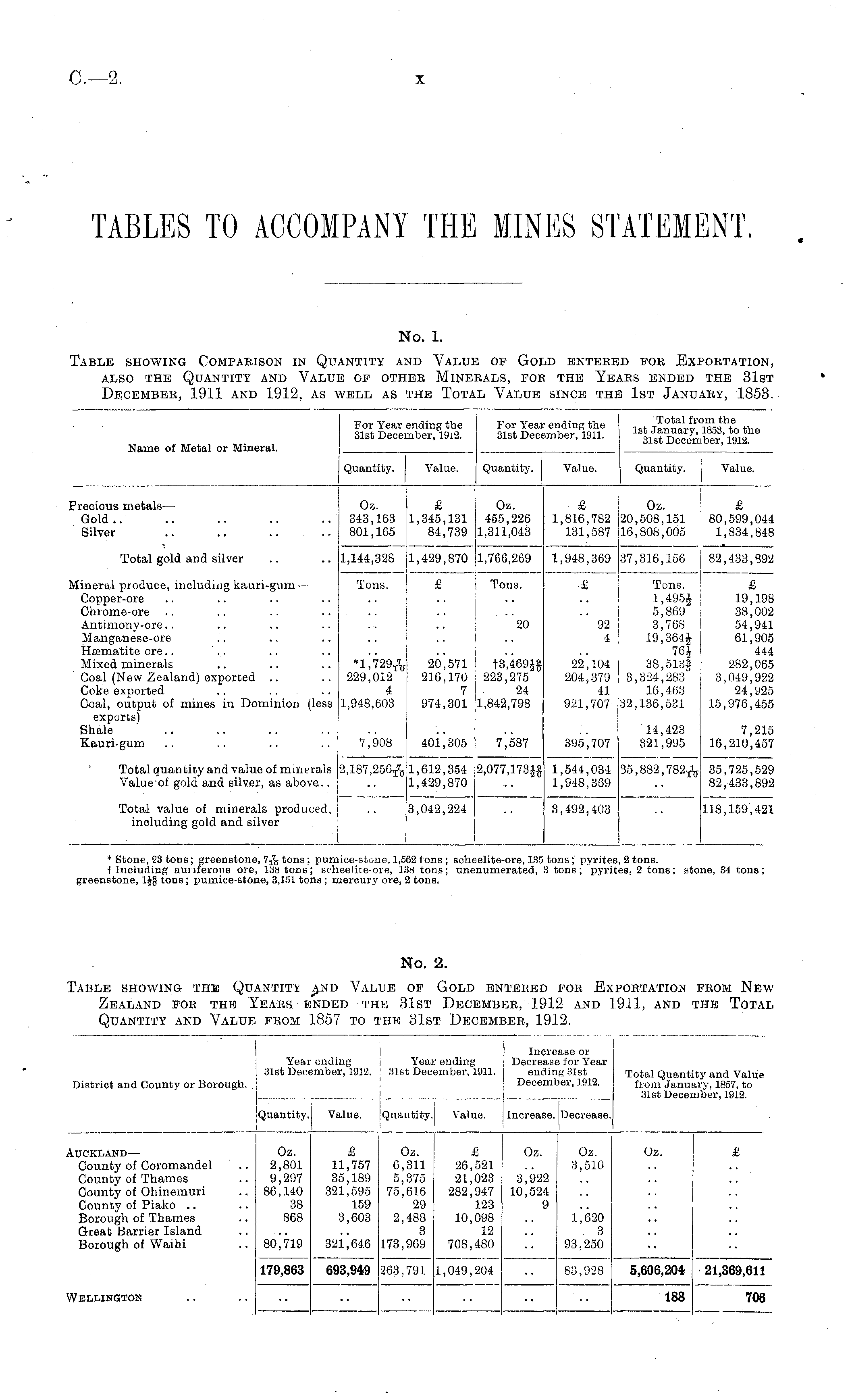 TABLES TO ACCOMPANY THE MINES STATEMENT.