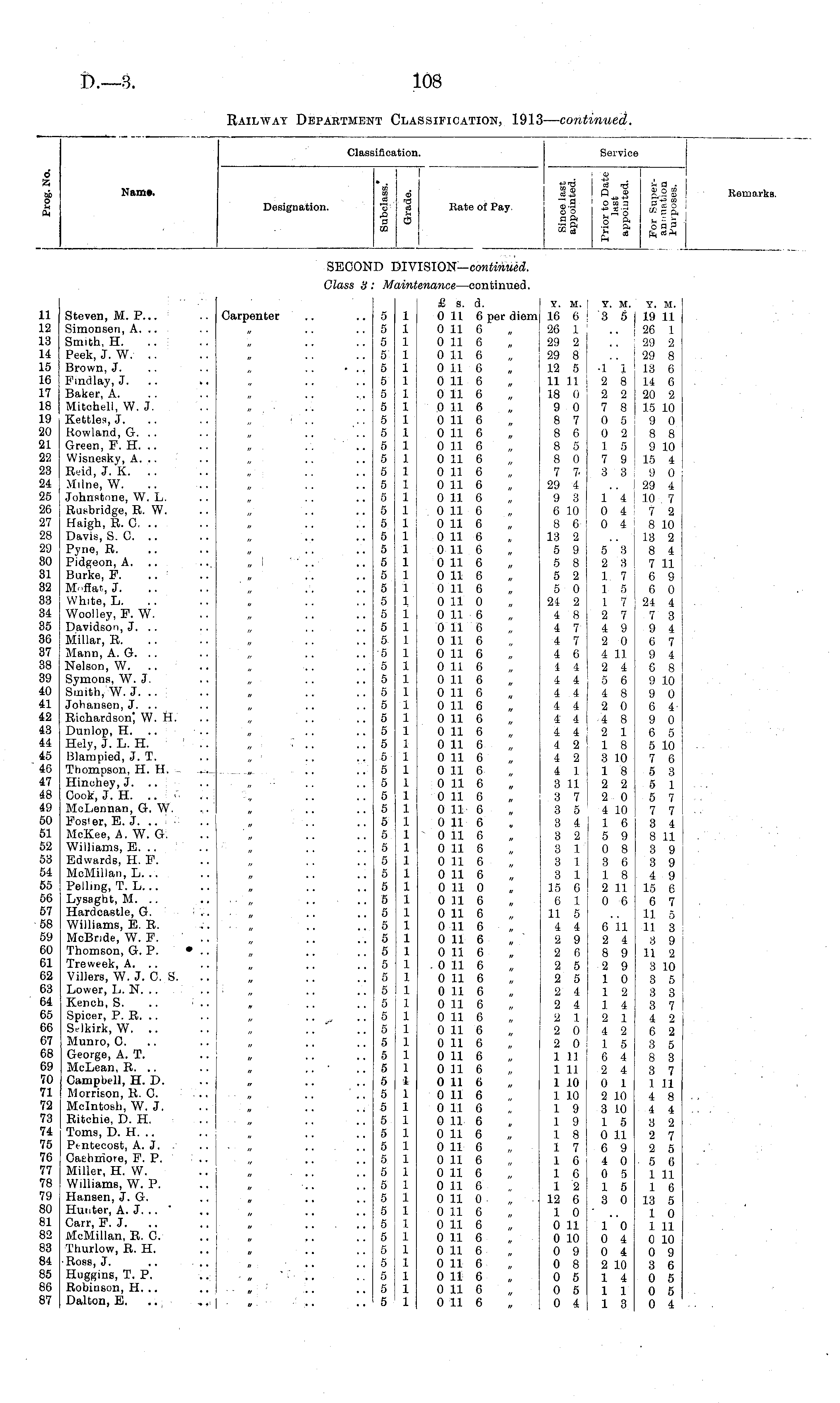 Class lifici ition. Service 6 si o ft Name. ED XI OQ 6 5 Rate of Pay. ~~2 —r~ —' 22 I aj° S..2 cS I ©.a °i.3 JNs i © o T,£ o 0. a a g a j, 3 3. o & •§ ft I o a 3 S - <« k ed ft edft Remarks. Designation. SECON •IV 'ISION — continued. Glass 3: ;ini ienance —continued. 11 12 13 14 15 16 17 18 19 20 21 22 23 24 25 26 27 28 20 30 31 32 88 34 35 36 37 38 89 40 11 42 43 44 45 46 47 48 4'.) 50 51 52 58 54 55 56 57 58 50 60 01 62 68 64 65 60 07 68 60 70 71 72 73 74 75 76 77 78 79 SO 81 82 83 84 85 86 87 Steven, M. P... Simonsen, A. .. Smith, H. Peek, J. W. .. Brown, J. Findlay, J. Baker, A. Mitchell, W.J. Kettles, J. Rowland, G. .. Green, F. H. .. Wisnesky, A. .. Reid, J. K. .. Milne, W. Johnstone, W. L. Rusbridge, R. W. Haigh, R. 0. .. Davis, S. 0. .. Pyne, R. Pidgeon, A. Burke, F. M.-ffat, J. White, L. Woolley, F. W, Davidson, J. .. Millar, R. Mann, A. G. .. Nelson, W. Symons, W. J. Smith, W. J. .. Johansen, J. .. Richardson' W. H. Dunlop, H. Hely, J. L. H. Blampied, J. T. Thompson, H. H. Hinchey, J. .. Cook, J. H. MoLennan, G. W. Foster, E. J. .. .. I McKee, A.W. G. Williams, E. .. Edwards, H. F. McMillan, L. .. Polling, T. L... Lysaght, M. .. Hardcastle, G. Williams, E. R. McBnde, W. F. Thomson, G. P. • .. Treweek, A. .. Villers, W. J. 0. S. Lower, L. N. .. Kench, S. Spicer, P. R. .. Selkirk, W. .. Munro, 0. George, A. T. McLean, R. .. Campbell, H. D. Morrison, R. 0. Mcintosh, W. J. Ritchie, D. H. Toms, D. H. .. Pentecost, A. J. .. Cathmore, F. P. Miller, H. W. Williams, W. P. Hansen, J. G. Hunter, A. J. .. ' Carr, F. J. McMillan, R. C. Tburlow, R. H. ■Ross, J. Huggins, T. P. Robinson, H. .. Dalton, E. Carpenter 5 5 5 5 5 5 5 5 5 5 5 5 5 5 5 5 5 5 5 5 5 5 5 5 5 5 5 5 5 5 5 5 5 5 5 5 5 5 5 5 5 5 5 5 5 5 5 5 5 5 5 5 5 5 5 5 5 5 5 5 5 5 5 5 5 5 5 5 5 5 5 5 5 5 5 5 5 1 1 1 1 1 1 1 1 1 1 1 1 1 1 1 1 1 1 1 1 1 1 1 1 1 1 1 1 1 1 1 1 1 1 1 1 1 1 1 1 1 1 1 1 1 1 1 1 1 1 1 1 1 1 1 1 1 1 1 1 1 1 1 1 1 1 1 1 1 1 1 1 1 1 1 1 1 £ s. d. Oil 6 per diem' 0 11 6 0 11 6 0 11 6 0 11 6 0 11 6 0 11 6 0 11 6 0 11 6 0 11 6 0 11 6 0 11 6 0 11 6 0 11 6 0 11 6 0 11 6 0 11 6 0 11 6 0 11 6 0 11 6 0 11 6 0 11 6 0 11 0 0 11 6 0 11 6 0 11 6 0 11 6 0 11 6 0 11 6 0 11 6 0 11 6 0 11 6 0 11 6 0 11 6 0 11 6 0 11 6 0 11 6 0 11 6 0 11 6 0 11 6 0 11 6 0 11 6 0 11 6 0 11 6 0 11 0 0 11 6 0 11 6 0 11 6 0 11 6 0 11 6 .Oil 6 0 11 6 0 11 6 0 11 6 0 11 6 0 11 6 0 11 6 0 11 6 0 11 6 0 11 6 0 11 6 0 11 6 Oil 6 0 11 6 0 11 6 0 11 6 0 11 6 0 11 6 0 11 0 0 11 6 0 11 6 0 11 6 0 11 6 0 11 6 0 11 6 0 11 6 0 11 6 Y. SI. 16 6 26 1 29 2 29 8 12 5 11 11 18 0 9 0 8 7 8 6 8 5 8 0 7 7 29 4 9 3 6 10 8 6 13 2 5 9 5 8 5 2 5 0 24 2 4 8 4 7 4 7 4 6 i i 4 4 4 4 4 4 4 4 4 4 4 2 4 2 4 1 3 11 3 7 3 5 3 4 3 2 3 1 3 1 3 1 15 6 6 1 11 5 4 4 2 9 2 6 2 5 2 5 2 4 2 4 2 1 2 0 2 0 1 11 1 11 1 10 1 10 1 9 1 9 1 8 1 7 1 6 1 6 1 2 12 6 1 0 0 11 0 10 0 9 0 8 0 5 0 5 0 4 I Y. M. 3 5 ■1 1 2 8 2 2 7 8 0 5 0 2 1 5 7 9 3 3 l' - 4 0 4 0 4 5 3 I 2 8 1 7 1 5 1 7 2 7 4 9 2 0 4 11 2 4 5 6 4 8 2 0 I 4 8 2 1 i 1 8 3 10 1 8 2 2 2 0 4 10 ! 1 6 5 9 0 8 : 3 6 1 8 ! 2 11 0 6 6 11 2 4 8 9 2 9 1 0 1 2 1 4 i 2 1 4 2 1 5 6 4 I 2 4 0 1 2 10 3 10 1 5 0 11 6 9 4 0 0 5 1 5 3 0 1 0 0 4 0 4 2 10 1 4 1 1 1 3 Y. SI. 19 11 26 1 29 2 29 8 13 6 14 6 20 2 15 10 9 0 8 8 9 10 15 4 9 0 29 4 10 7 7 2 8 10 13 2 8 4 7 11 6 9 6 0 24 4 7 3 9 4 6 7 9 4 6 8 9 10 9 0 6 49 0 6 5 5 10 7 6 5 3 ■5 1 5 7 7 7 3 4 8 11 3 9 3 9 4 9 15 6 6 7 11 5 11 3 8 9 11 2 3 10 3 5 3 3 3 7 4 2 6 2 3 5 8 3 3 7 1 11 4 8 4 4 3 2 2 7 2 5 5 6 1 11 1 6 13 5 1 0 1 11 0 10 0 9 3 6 0 5 0 5 0 4