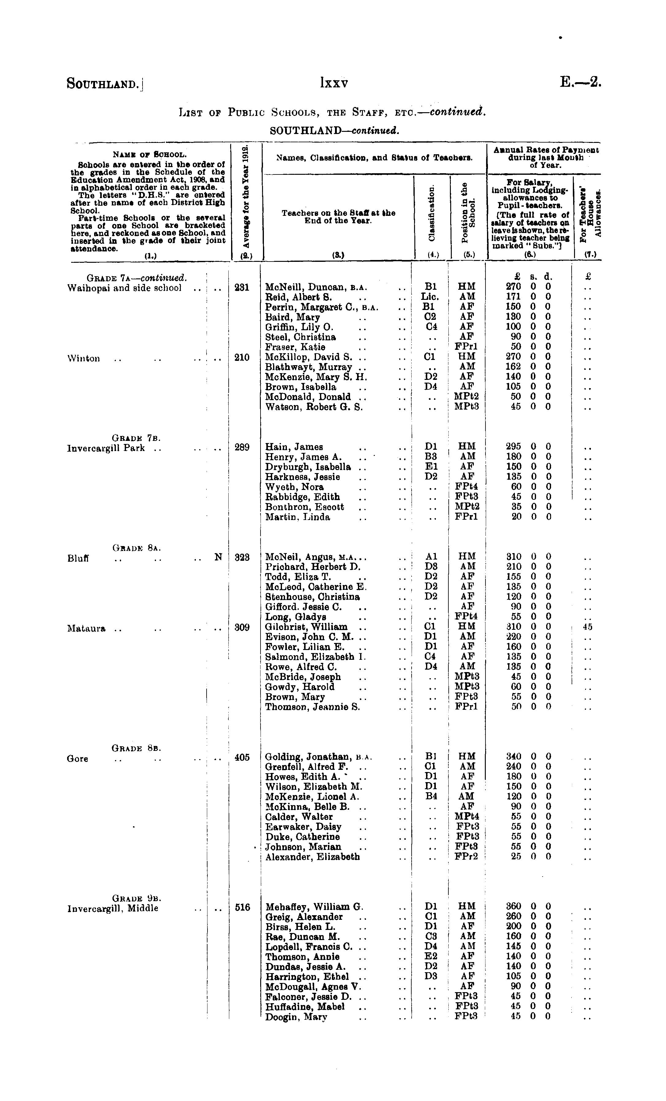 List of Public Schools, the Staff, etc. — continued. SOUTHLAND— continued.