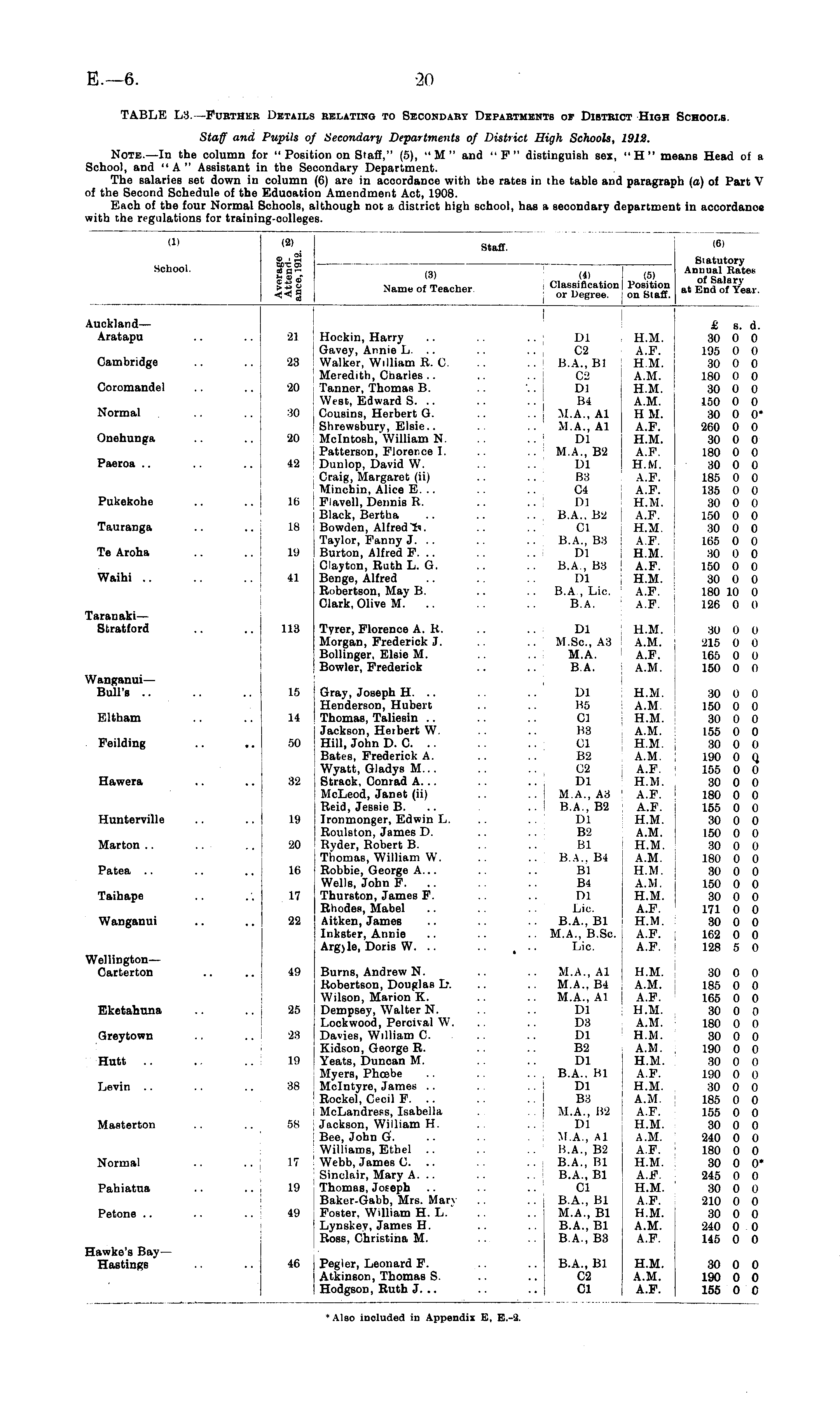 Note. —In the column foi School, and "A" Assistant ir Tbe salaries set down in if the Second Schedule of tbe 1 Each of the four Normal S tith the regulations for trainin >r " Positi n the Sec column I Eduoatioi Bchools, a ng-oollegei ion on Staff," (5), "M" and "P" distinguish sex, "H" mi sondary Department. (6) are in accordance with the rates in the table and paragraj n Amendment Act, 1908. lthough not a district high school, has a secondary departmen Bans Head of a )h (a) of Part V it in accordance 3. (6) (1) School. (2) Hi Staff. (4) (5) Classification Position • or Degree. on Staff. Statutory Annual Rate* of Salary at End of Year. (3) Name of Teacher. lUckland— Aratapu ■21 ■21 Hockin, Harry Gavey, Annie L. .. Walker, William B. C. Meredith, Cnarles .. Tanner, Thomas B. West, Edward S. .. Cousins, Herbert G. Shrewsbury, Elsie.. Mclntosh, William N. Patterson, Florence I. Dunlop, David W. Craig, Margaret (ii) Mincbin, Alice E. .. Flavell, Dennis R. Black, Bertha Bowden, Alfreds. Taylor, Fanny J. .. Burton, Alfred F. .. Clayton, Ruth L. G. Benge, Alfred Robertson, May B. Clark, Olive M. Dl H.M. C2 A.F. B.A..B1 H.M. C2 A.M. Dl H.M. B4 A.M. M.A., Al HM. JI.A..A1 A.F. .. I Dl H.M. .. M.A., B'2 A.F. Dl H.M. B3 A.F. C4 A.F. Dl H.M. B.A., B2 A.F. CI H.M. B.A., B3 A.F. Dl H.M. B.A., B3 A.F. Dl H.M. .. B.A., Lie. A.F. B.A. A.F. ! £ s. d. 30 0 0 195 0 0 30 0 0 180 0 0 30 0 0 150 0 0 30 0 0 , 260 0 0 30 0 0 180 0 0 30 0 0 185 0 0 135 0 0 30 0 0 150 0 0 30 0 0 165 0 0 30 0 0 150 0 0 30 0 0 180 10 0 126 0 0 Cambridge 23 23 Coromandel •20 •20 Normal 30 30 Onehunga •20 20 Paeroa .. 42 42 Pukekohe 16 16 Tauranga 18 18 Tβ Aroha 19 19 Waihi .. 41 41 'arauaki — Stratford 113 113 Tyrer, Florence A. K. Morgan, Frederick J. Bollinger, Elsie M. Bowler, Frederick Dl H.M. M.Sc, A3 A.M. ; M.A. > A.F. ! B.A. A.M. 30 0 0 216 0 0 165 0 0 150 0 0 Vanganui— Bull's .. 15 Eltham Feilding Hawera Hunterville 14 50 32 19 Gray, Joseph H. .. Henderson, Hubert Thomas, Taliesin .. Jackson, Herbert W. Hill, John D. C. .. Bates, Frederick A. Wyatt, Gladys M... Strack, Conrad A. .. McLeod, Janet (ii) Reid, Jessie B. Ironmonger, Edwin L. Roulston, James D. Ryder, Robert B. Thomas, William W. Robbie, George A... Wells, John F. .. ThurBton, James F. Rhodes, Mabel Aitken, James Inkster, Annie Arg)le, Doris W. .. Dl H.J1. HO i A.M. CI I H.M. B3 A.M. CI ; H.M. B2 A.M. : C2 j A.F. Dl H.M. M.A., A3 ' A.F. B.A., B2 A.F. i Dl H.M. B2 A.M. Bl H.M. B.A., B4 A.M. j Bl H.M. B4 A.M. Dl H.M. Lie. A.F. .. B.A., Bl H.M. : .. M.A., B.Sc. A.F. i , .. Lie. A.F. I 30 0 0 150 0 0 30 0 0 155 0 0 30 0 0 190 0 Q 155 0 0 30 0 0 180 0 0 155 0 0 30 0 0 150 0 0 30 0 0 180 0 0 30 0 0 150 0 0 30 0 0 171 0 0 30 0 0 162 0 0 128 5 0 Marton .. 20 Patea .. 16 Taibape 17 Wanganui 22 Wellington— Carterton 49 Burns, Andrew N. Robertson, Douglas l>. Wilson, Marion K. Dempsey, Walter N. Lockwood, Percival W. Davies, William C. Kidson, George R. Yeats, Duncan M. Myers, Phoebe Mclntyre, James .. Rockel, Cecil F. .. McLandress, Isabella Jackson, William H. Bee, John G. Williams, Ethel .. Webb, James 0. Sinclair, Mary A. .. Thomas, Joseph Baker-Gabb, Mrs. Mary Foster, William H. L. Lynekey, James H. Ross, Christina M. Pegler, Leonard F. Atkinson, Thomas S. Hodgson, Ruth J. .. M.A., Al H.M. .. M.A..B4 A.M. .. M.A., Al A.F. ! Dl H.M. D3 A.M. Dl H.M. B2 A.M. Dl H.M. B.A.. Bl A.F. Dl H.M. B3 A.M. II.A., B2 A.F. Dl H.M. M.A., Al A.M. B.A., B2 A.F. B.A., Bl H.M. B.A., Bl A.F. CI H.M. ' B.A., Bl A.F. M.A., Bl H.M. i B.A., Bl A.M. B.A., B3 A.F. .. B.A., Bl H.M. C2 A.M. 01 A.F. 30 0 0 185 0 0 165 0 0 30 0 0 180 0 0 30 0 0 190 0 0 30 0 0 190 0 0 30 0 0 185 0 0 155 0 0 30 0 0 240 0 0 180 0 0 30 0 0* 245 0 0 30 0 0 210 0 0 30 0 0 240 0 0 145 0 0 30 0 0 190 0 0 155 0 C Eketahuna 25 Greytown ■23 Hutt .. 19 Levin .. 38 MaBterton 58 Normal 17 Pahiatua Petone .. 19 49 lawke's Bay— Hastings 46 * Also included in A] >endix E, E.-'J.