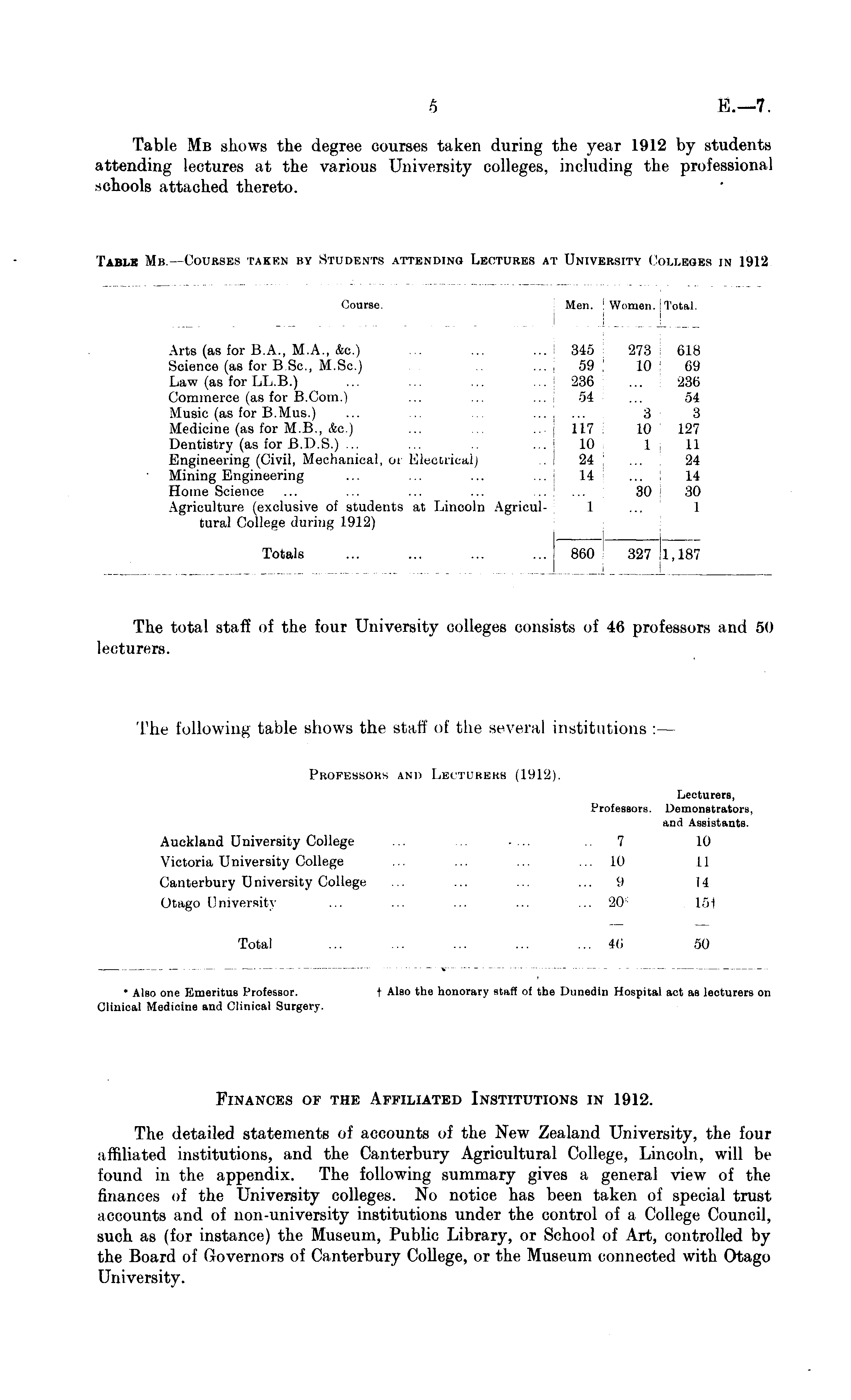 Table Mb shows the degree courses taken during the year 1912 by students attending lectures at the various University colleges, including the professional schools attached thereto.