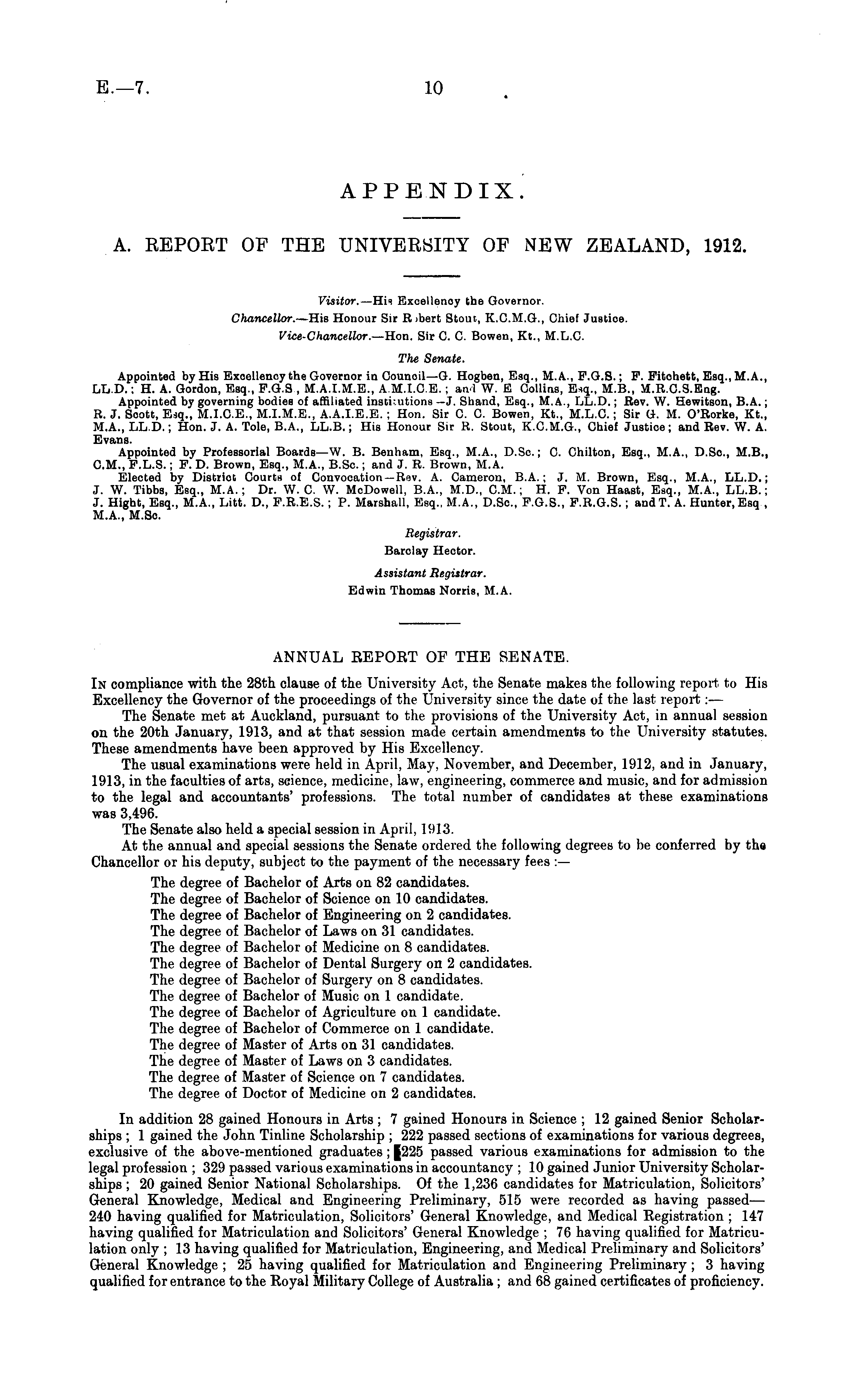 APPENDIX. A. REPORT OF THE UNIVERSITY OF NEW ZEALAND, 1912.