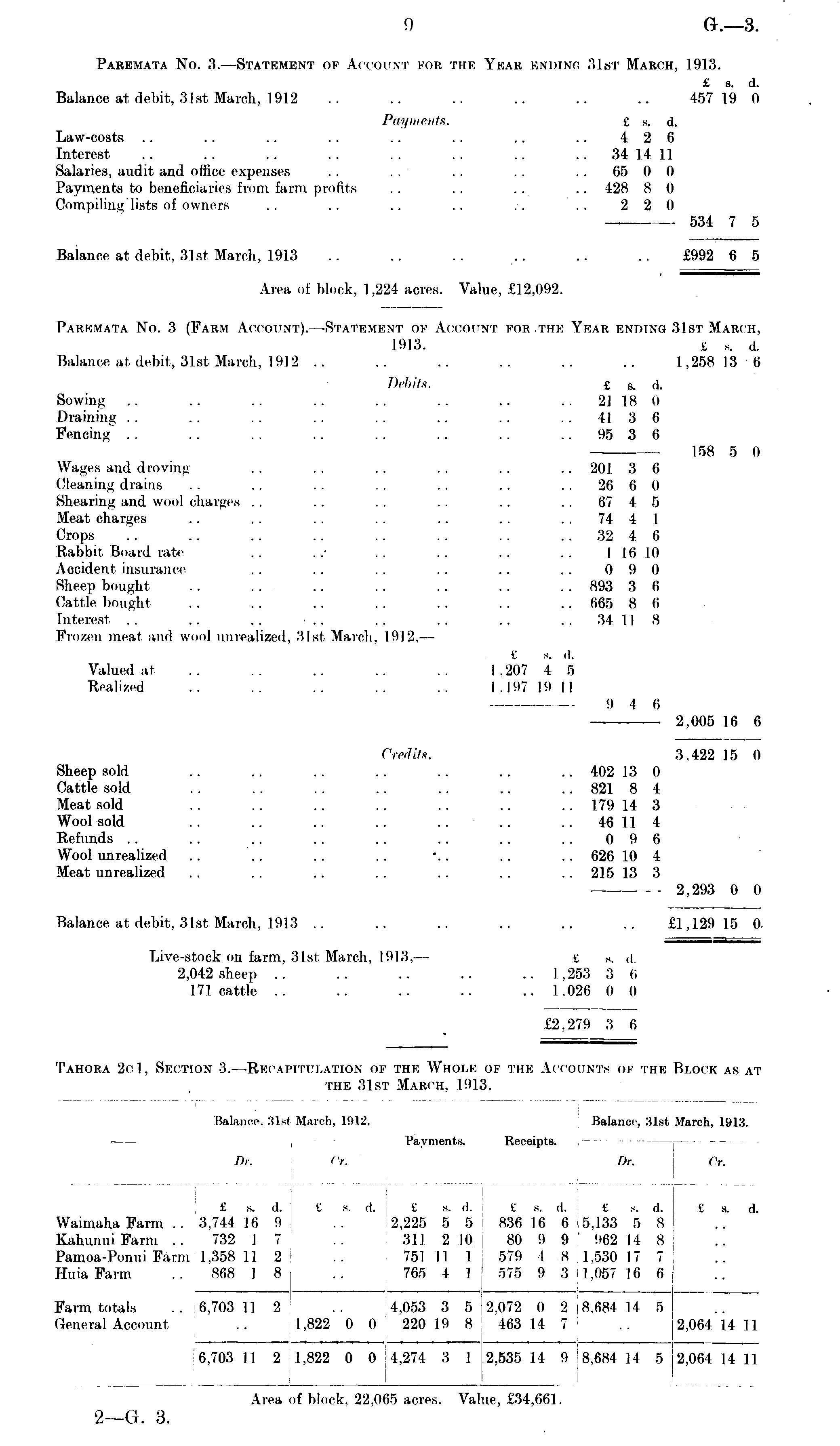Tahora 2c 1, Section 3. —Recapitulation of the Whole of the Accounts of the Block as at the 31st March, 1913.