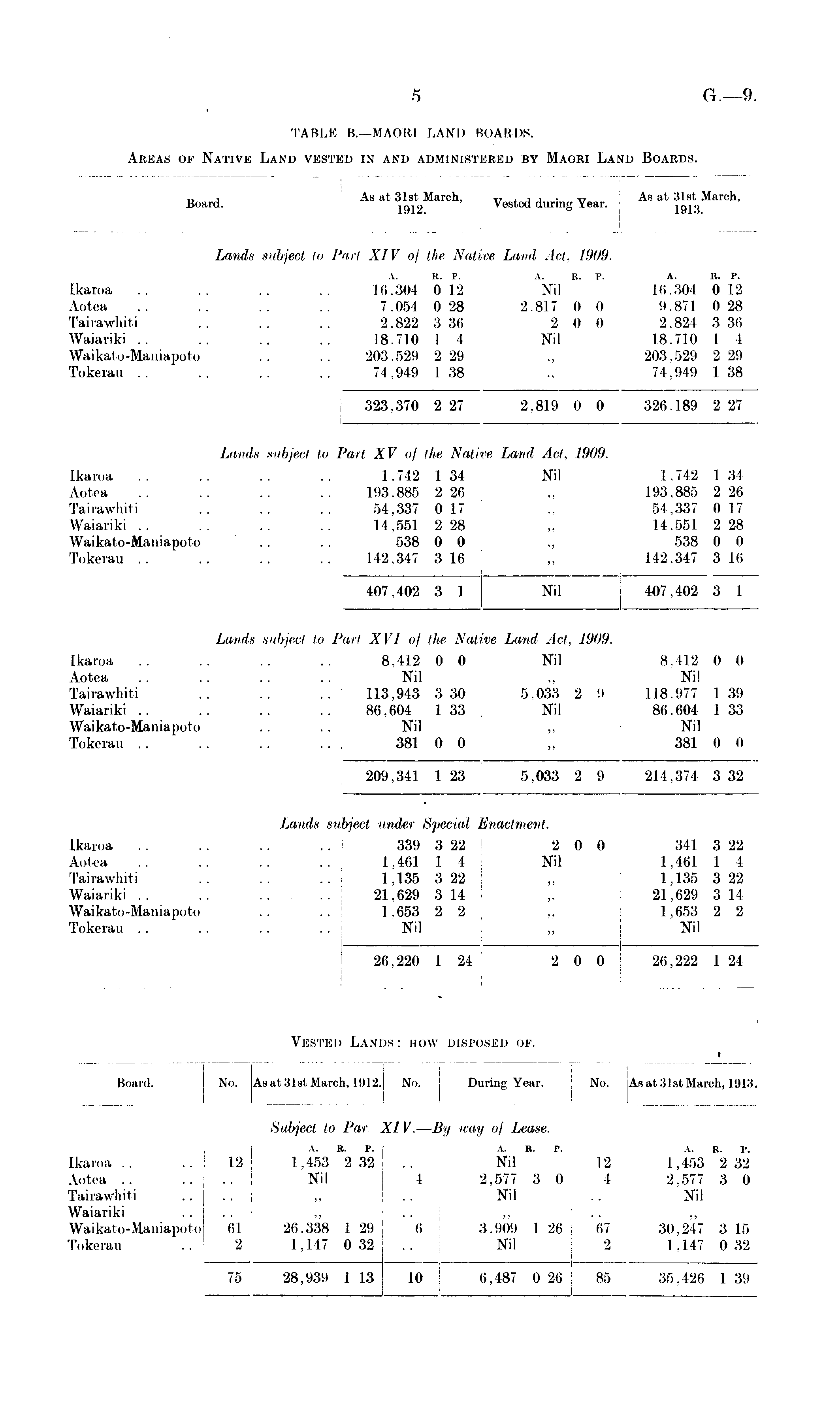 TABLE B.—MAORI LAND BOARDS. Areas of Native Land vested in and administered by Maori Land Boards.