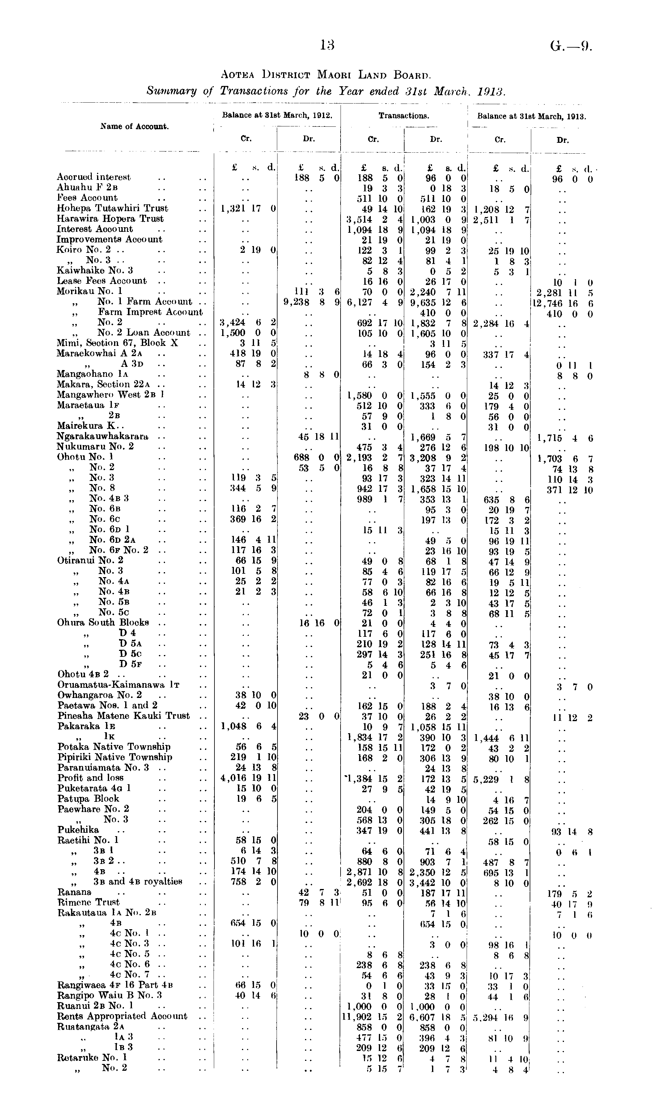 Aotea District Maori Land Board. Summary of Transactions for the Year ended 31st March, 1913.