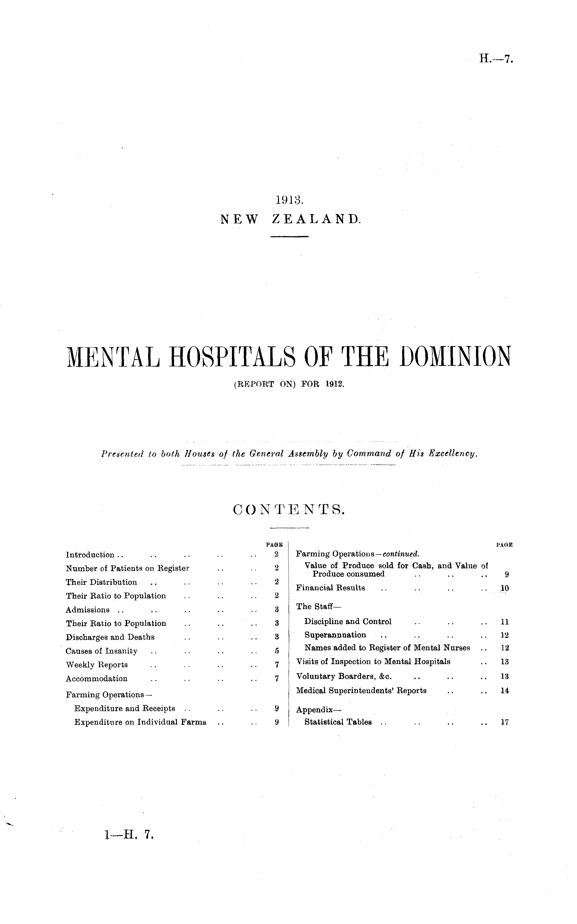 MENTAL HOSPITALS OF THE DOMINION (REPORT ON) FOR 1912.