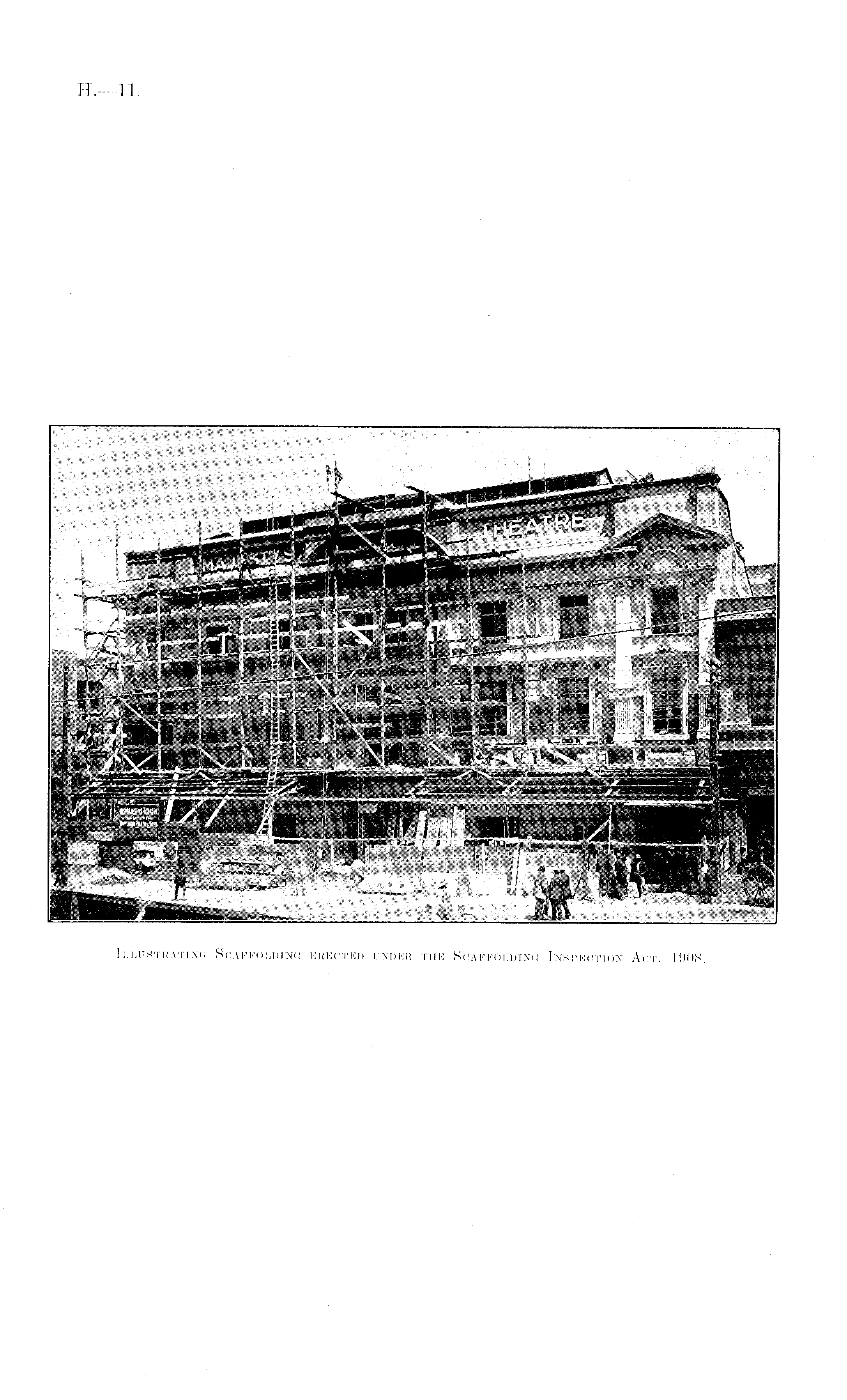 Illustrating Scaffolding erected under the Scaffolding Inspection Act, 1908.