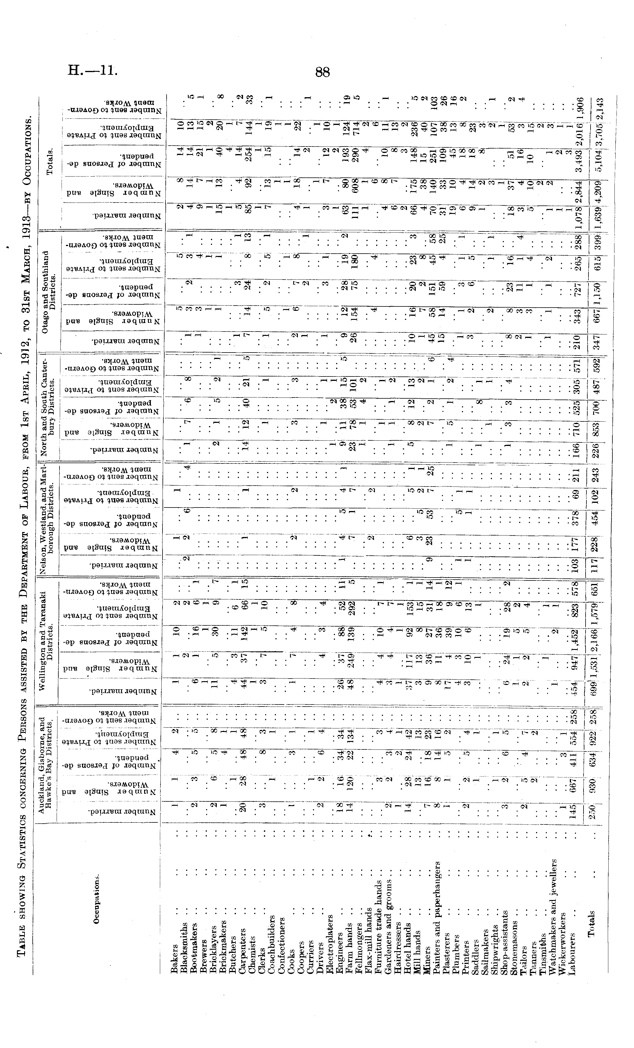 Auckland, Gisborne, and Hawke's Bay Districts. Wellington and Taranaki Districts. Nelson, Westland, and Marlborough Districts. North and South Cai bury Districts. iterOtago and Sou Districtf [thland Totals. Occupations. 3 I 52 1 » £ : § II ! II I" i? i £ S i a ; §a : gs LSI -Sa a| as >5 iz Cβ S 53 . £ so ■2 gS 1 It is C o ■ B go sa as £ S5 n a> fc I n § © a : © o h O I h P g , i> a a 3 a 5 Z S5 O a J. i≤ ill! 1 u O 3H o o . "E l> a 1 V! n ! tub "Q I IS.! ■■ s c as i- .. § ce d : ft Q , h 9 So , ■ i> S , J3 a Bakers Blacksmiths Bootmakers Brewers Bricklayers Brickmakers Butchers Carpenters Chemists Clerks Coachbuilders Confectioners Cooks Coopers Curriers Drivers Electroplaters Engineers Farm hands .. Fellmongers Flax-mill hands Furniture trade hands .. Gardeners and grooms .. Hairdressers Hotel hands .. Mill hands Miners Painters and paperhangers Plasterers Plumbers Printers Saddlers Sailmakers Shipwrights Shop-assistants Stonemasons Tailors Tanners Tinsmiths Watchmakers and jewellers Wickerworkers Labourers Totals 1 1 4 2 "3 5 2 6; 5 1 .. I 4 .. .. 1 20 28 48 3 .. "8 .. .. 1 .. 2 2! 6 18 16 34 .. 14 120 22 .. .. 3 .. 2 2 3 ii .. 2 14 28 24 .. .. 13 .. 7 16, 18 8 8 14 1 1 5 2 "2 "r> 1 3 2 6 :: "2 - 5 | --4 .. 145 667! 411 . . 250 !)30 634| 2 .. 1 1 10 2 .. > 5 .. 6 1 16 .... 1 .. 1 i 8 .. 11 5 30 1 1 .. 4 3 11 i 48j .. 44 37 142 .. I .. 1 .. 1 13.. 3 7 5 : 1 .. 1 "7 "4 i 4 .. . . 4 3 2 2 6 1 9 6 66 10 I 7 I 1 15 1 .- ! 2 6 . . 1 .. 1 1 4 ' 1 "2 14 7 1 12 r -6 "8 \ '.'. .... .. I 5 2 1 I ! 40 21 "5 6 5 ■40 1 5 "l 1 7 5 3 3 1 1 14 "2 4 1 ... 1 .. ! 1 3 .. 24i 8 -2 - 7 8 2 .. 3 "l I i ! 1 L y .. 1 ! 13 2 4 9 1 15 5 85 1 7 92 1 13 !i 14 14 21 1 40 4 14 254 15 "14 2 10 13 15 2 20 1 7 1441 19! 1 1 22! 2 33 I II .. .. ( 1 5 • 1 13 1 1 18. 1 .. ! " 8 | 2! '.'. 2 * * I 3 :: ■■■:: 2 1 I 6 I"4 1 1 : 34 .. 26 37 88| : 134 1 .. I 48; 249 139 .... .. .. 3 .. 4 4 10 4 .. 3 4 4 1 .. 1 .. 1 : 42 .. I 37 117 92 13 .. 3 13 8 > 23 .. 9j 36J 27 16 .. 8J 11 36 2 .. 17 4 39 I..!..! 4 3 10 4| . . ; l 3 10 6 5 . . 6 24 ; 1 9 .... 1 1 5 7 .. 2 2 5 21 .. .... 1 .. 2 554] 258 454 947 1,452 922 1 258 699; 1,531 2,166 ■■ 4 52 292 7 7 1 153 15 31 18 9 6 13 1 1 1 14 i 1 12 1 11 5 •• I 1 ■■ "9 1 1 •• .. .. I - - "4 "5 7 1 I .. ..I 2 .. 1 6 3 5 1 23 53 . 5 1 4 7 2 7 1 1 ■• 1 1 25 1 23 lj 1 5 "l 1 11 78 1 1 1 8 2 7 5! 2 1 .. 38 15 5 i 53 101 .. 4 2 .. :: ■• :: 1 2 .. i 12 13 '.'. .. 2 . . 2 1 6 "l "21 "4 2 38 53 4 1 1 9 26 10 45 15 1 3 ■• 1 12 i 154 4 • ■ 1 16 7 58 14 1 2 20 2 151 59 ' "3 28 19 75 180 .. ! .. 4 20 23 2 8 151 45 59 4 "3 "] 6| 5 . . ! 1 "2 1 •• I 3 58 25 4 70 6 9 1 3 1 63 111 1 1 7 80 608 1 6 8 7 175 38 140 33 10 4 14 2 3 1 37 4 10 2 12 193 290 4 10 8 3 148 15 251 109 45 18 18 8 1 10 124 714 6 11 13 2 236 40 1071 38J 13 8 23| 3: 2 1 53l 3 15 2! 3^ 1 ,016 ,705 i9 5 1 5 2 103 26 16 2 1 8 1 '.'. 1 .. I .. .. '' \ 1 2 1 II 1 i I • ■ 28 2 4 "2 1 3 1 3 4 . . 8 2 1 8 3 3 23 11 1 23 16 11 1 1 4 18 3 5j 51 16 10 2 4 •• . . I I . I 4| ■■ •• - •■ I 1 •• .. .. ...... ] 1 1 "2 1 1,078 .. .. .. 1 1 2 3 3,493 •• I •• 823 578 103 177 378 69 211 166 710 525 305 571 700 487 592 210 343 727 •■ i 265 288 1 I 2,844 1,906 1 ,579 651 117 228 454 102 i 1 243 ; 226 347 i 667 I 399: 1 1,639 4,209 1 1853 1,150| 615 5,104 2,143