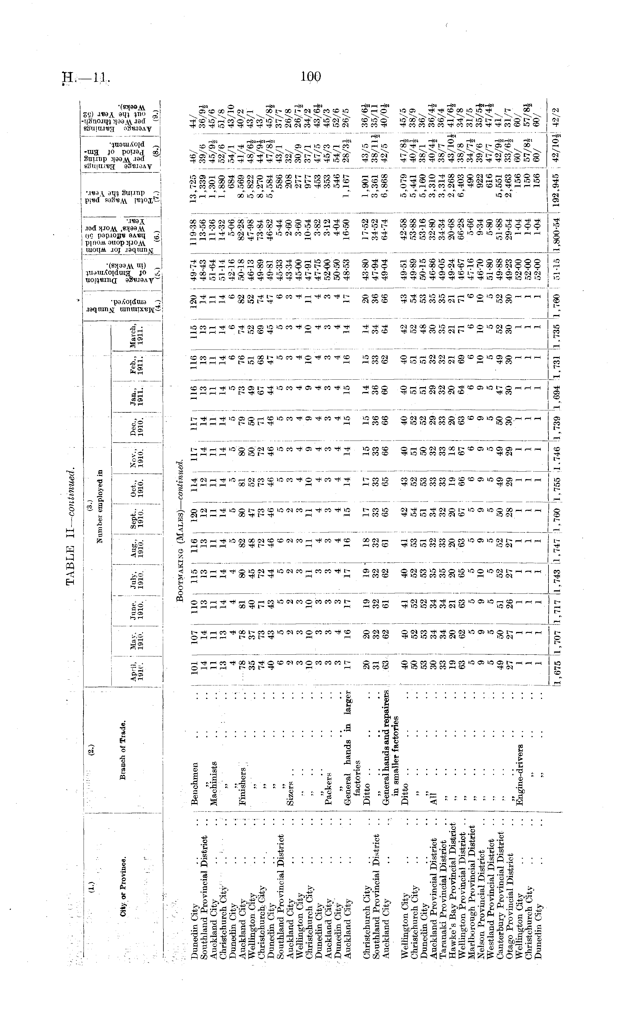 (1.) City or Province, I ! ■ i (2.) Branch of Trade. April, May, ! June. Julv, Aug., Sept.. ; Oct., Sow, Dee., ] Jan., Feb., March, 191C. 1910. | 1910. 1910, 191(1. 1910. ! 1910. 1910. 1910. j 1911. : 1911. 1911. (3.) Nam her employed in 3 at \ ss '■"•§?-« (4.) 1 (i-., <«■>. 1 §1 I 2 O^-v on a. © CO .fl (7.) v. SO ■ ! 21 -C CM 3 eg i a™ 52 - 1^1-5! eo fl "3 _ . Cl.tl rO CO rr " ZrC-rC a ei free AhPh Ah Jdcr(80 (9.) • Bootmaking (Maxes) — continued. Dunedin City .. .. Benchmen .. .. j 101 107 110 115 I 116 120 114 117 Southland Provincial District .. „ .. . . 14 14 13 13 j 13 12 12 14 Auckland City .. .. j Machinists .. ..11 11 11 11 j 11 11 11 11 Christchurch City ..'..: „ ..':..' I 13 13 14 14 14 14 14 14 Dunedin City .. . . „ . . .. 4 4 4 4 5 5 5 5 Auckland Citv .. . i Finishers .. .. 78 78 81 80 82 80 81 80 Wellington City .. . { - .. .. 35 37 40 45 48 ! 47 52 50 Christchurch,- City .. .. „ .. .. 74 73 71 72 72 ; 73 73 72 Dunedin City . . ' .. „ .. . . : 40 43 43 44 46 : 46 46 ; 46 Southland Provincial District .. „ .. .. ! 6 5 5 5 6 5 5 j 5 I Auckland Citv .. .. Sizers .. .. ..12 2 2 2,22 3 3: Wellington City .. .. .. 3 3 3 3 3 3 4 4 Christchurch City .. .. „ .. .. 10 10 10 11 11 11 10 9 Dunedin City ' .. .. „.. .. .." 3 3 3 3 4; 4 4 4 Auckland Citv .. . . Packers .. .. 3 3 3 3 3 3 3 3 Dunedin City' .. .. „ .. .. 3 4 3 4 4 i 4 I 4 I 4 Auckland City .. .. General hands in larger 17 16 17 17 16 15 ! 14 14 factories Christchurch City .. .. Ditto .. .. .. 20 20 19 19 - 18 ; 17 17 15 Southland Provincial District .. „ .. .. j 31 32 32 32 32 j 33 33 j 33 Auckland City .. .. General hands and repairers ! 63 62 61 62 61 65 65 J 66 in smaller factories Wellington City .. .. Ditto .. .. ..40 40 j 41 . 40 j 41 ' 42 43 40 Christchurch City .. .. „ .. .. ..50 52 52 52 53 54 52 51 Dunedin City .. .. „ .. .. 53 53 j 52 53 51 51 53 \ 50 Auckland Provincial District .. All .. .. .. 30 34 34 35 , 32 : 34 33 32 Taranaki Provincial District .. „ .. . . .. 33 34 34 - 35 33 32 33 33 Hawke's Bay Provincial District „ .. .. .. 19 20 21 J 20 I 20 j 20 19 18 Wellington Provincial District . . „ .. .. .. 63 62 63 j 65 63 67 66 ] 67 Marlborough Provincial District „.. .. .. 5 5 5 5 5 5 6 ' 6 TNelson Provincial District ..„.. .. ,. ! 9 9 9 10 9 9 9 9 Westland Provincial District ...... .. .. 5 5 5 5 5 5 5 5 Canterbury Provincial District .. „ . . .. .. 49 50 51 52 52 50 49 49 Otago Provincial District • ■ „ .. .. .. 27 27 26 27 j 27 28 29 29 Wellington City . . . . Engine-drivers .. .. 1 1 1 11 1 1 1 Christchurch Citv .. .. ,. .. .. 1 1 1 1 1 1 1 1 Dunedin City . . .. „ .. .. 1 1 111 1 1 1 j I - 1,675 1,707 1,717 1.743 1.747 1,760 1,755 1.746 ] '. 117 ; 116 j 116 115 120 49-74 I 119-38 13,725 46/ 44/ 14 13 13 13 14 48-43 | 13-56 1,339 39/6 : 36/9* 11 11 11 11 ! 11 51-64 ! 11-36 j 1,301 45/91 | 45 /6 14 14 14 14 14 51-14 i 14-32 ! 1,880 52/6 51/8 5 5 ; 6 6 6 42-16 : 5-06 ! 684 54/1 ! 43/10 79 73 76 74 82 : 50-18 ! 82-28 : 8,569 i 41/4 40/2 50 ! 49 '■ 51 52 52 46-13 ! 47-98 5.822 ! 48/61 43 /l 71 : 67 68 69 74 49-89 ' 73-84 8,270 44/9* 43/ 46 44 47 45 47 49-81 46-82 5,584 ! 47/8-5 45/81 5 j 5 5 5 1 6 45-33 5-44 586 j 43/1 37/7 3 3 3 3 3 43-34 2-60 208 32/ 26/8 4 4 4 4 4 45-00 3-60 277 30/9 26/7* 9 9 ! 10 ! 10 ! 11 47-91 I 10-54 , 977 37/1 34/2 4 I 4 ! 4 4 4 J 47-75 3-82 453 47/5 43/61 3 1 3 3 3 ! 3 ! 52-00 3-12 353 45/3 45/3 4 i 4 i 4 4| 4 j 50-50 4-04 ! 546 54/1 ' 52/6 15 15 16 14 17 48-53 i 16-50 | 1,167 28/31 : 26 / 5 15 14 15 14 20 43-80 17-52 1,901 43/5 : 36/61 36 I 36 : 33 ; 34 j 36 j 47-94 i 34-52 3,361 ! 38/11* 35/11 66 60 62 64 66 49-04 '■ 64-74 6,868 : 42/5 ! 40/0* 40 40 : 40 42 43 49-51 ; 42-58 ; 5,079 : 47/8* , 45/5 52 i 51 ! 51 52 54 49-89 I 53-88 ! 5,441 ! 40/4* I 38/9 52 > 51 51 48 53 50-15 53-16 5,160 38/1 36/ 29 29 32 30 35 46-86 32-80 3,310 40/4* 36/41 33 | 32 I 32 35 ! 35 i 49-05 ; 34-34 3,314 38/7 36/4 20 ! 20 ! 21 21 21 49-24 i 20-68 2,268 43/101 41/61 63 64 69 71 71 46-67 66-28 ! 6,403 38/8 34/8 6 ! 6 ] 6 6 6 i 47-16 | 5-66 ' 490 34/7* 31/5 9 ! 9 10 10 10 46-70 9-34 I 922 39/6 35/51 5 ! 5 5 5 5 ! 51-80 5-80 ! 616 47/7 47/41 50 ! 47 : 49 52 52 49-88 51-88 5,551 42/91 41 / 30 I 30 30 30 30 : 49-23 29-54 2,463 ; 33/61 I 31/7 111 1 1 1 52-00 1-04 156 60/ 60/ 111 1 1 1 ! 52-00 ! 1-04 150 57/81 57/8* 1 | 1 i 1 1 1 j 52-00 1-04 156 ! 60/ 60/ !1,739 1,694 1,731 1,735 1,760 51-15 1,800-54 192,945 42/10* 42/2