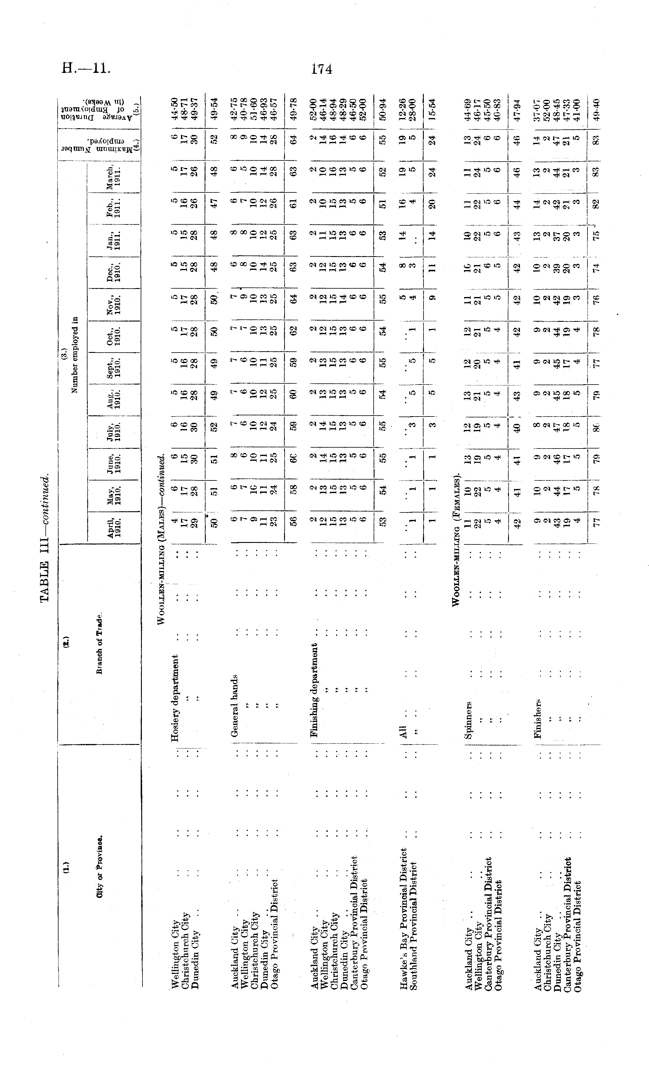 (1.) (2.) (3.) dumber employed in 11 1 "ja .3 Gity or Province. Branch of Trade. 1 a" es j tCJ O OJfr -r April, May, June, July, i Aug.. Sept., Oct., Nov., Dec, Jan., Feb.. March' g a a 1910. 1910. 1910. 1910. : 1910. 1910. 1910. 1910. 1910. 1911. 1911. 1911. 1 * g £•_..- l a -ri I I (4.) (5.) Wellington City Christchurch City Dunedin City Woollen-milling (Males) — continued. ... Hosiery department .. .. .. 4 6 6 6 5 5 5 5 5 5 5 5 6 44-50 ..1 „ .. .. .. 17 17 15 16 16 16 17 17 15 15 16 17 17 48-71 .. 29 28 30 30 28 28 28 28 28 28 26 26 30 49-37 50* 51 51 52 49 49 50 50. 48 48 47 48 j 52 49-54 Auckland City .. Wellington City Christchurch City Dunedin City Otago Provincial District . . General hands .. .. .. 6 6 8 7 7 7 7 7|6 8 6 6 8 42-75 .. 77666679'88759 40-78 9 10 10 10 10 10 10 10 10 10 10 10 10 51-60 11 11 11 12 12 11 13 13 14 12 12 14 14 46-93 23 24 25 24 25 25 25 25 25 25 26 28 28 46-57 56 58 6€ 59 60 59 62 64 63 63 61 63 64 49-78 Auckland City Wellington City Christchurch City Dunedin City Canterbury Provincial District Otago Provincial District .. Finishing department .. .. .. I 2 2 2 2 2 2 2 2 2 2 2 2 2 52-00 .. 12 13 14 14 13 13 12 12 12 11 10 10 14 46-14 .. 15 15 15 15 15 15 15 15 15 15 15 16 16 48-94 13 13 13 13 13 13 13 14 13 13 13 13 14 48-29 ..5555 5 666665 5 6 46-50 ..6666666666666 52-00 53 1 54 ' 55 ! 55 ' 54 ' 55 I 54 55 54 I 53 ' 51 I 52 55 50-94 Hawke's Bay Provincial District .. Southland Provincial District .. All . . .. .. .. .. I | .. .. i .. I .. I 5 8 J 14 16 19 19 12-26 „ .. .. .. .. .. I 1 1 1 ; 3 5 | 5 1 4 3 .. 4 5 5 28-00 I 1 1 1 ! 3 5 5 1 9 11 ! 14 20 24 24 15-54 Auckland City Wellington City Canterbury Provincial District Otago Provincial District Woollen-milling (Females). .. j Spinners .. .. .. .. 11 10 I 13 12 j 13 12 12 11 10 , 10 11 11 13 44-69 22 22 19 19 21 20 21 21 21 22 ! 22 24 24 46-17 5 5 ! 5 5 '' 5 j 5 5 5 ! 6 5,55 6 45-50 4 4:4 -1 1 4 ; 4 i 4 5 5 16! 6 6 6 40-83 42 i 41 ! 41 40 I 43 ! 41 i 42 42 42 ' .43 | 44 46 46 47-94 Auckland City Christchurch City Dunedin City Canterbury Provincial District Otago Provincial District .. Finishers .. .. .. .. 9 10 I 9 8 9 9 9 10 10 I 13 I 14 i 13 14 37-07 2 2 2 2 2 2 2 2 2222 2 52-00 .... 43 44 46 47 45 45 44 42 39 37 ' 42 44 47 48-45 .. 19 17 17 18 18 17 19 19 20 20 ; 21 21 21 47-33 4 5 5 5 5 4 4 3 3 3 3 13 5 4100 ; : i j_ __ 77 ! 78 79 80 79 77 78 76 74 75 ' 82 83 83 49-40