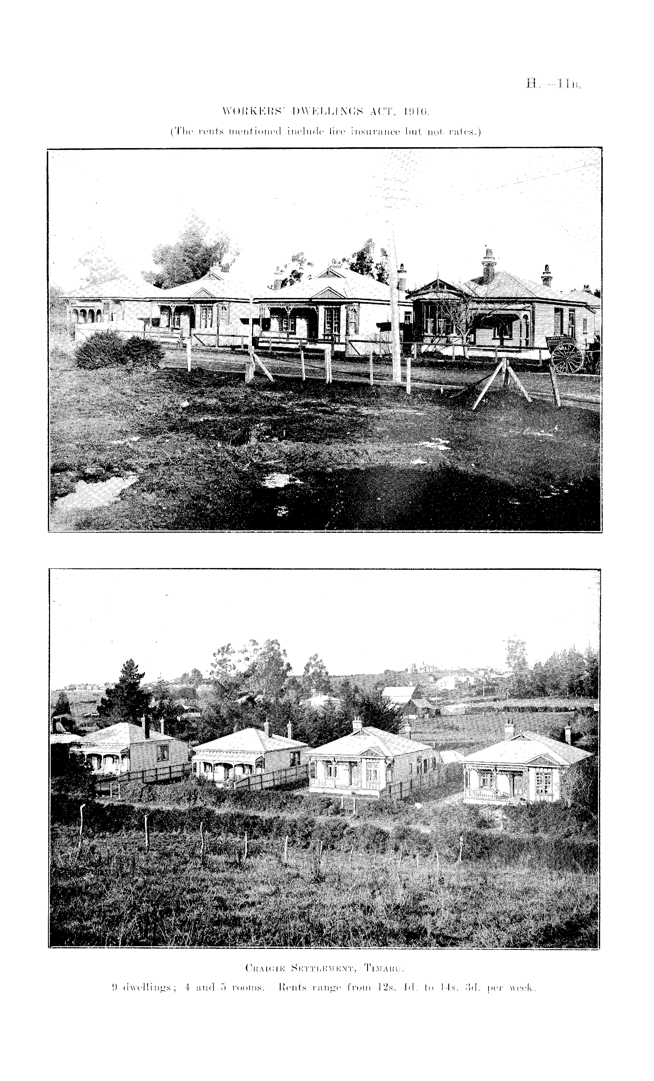 Craigie Settlement, Timaru. 9 dwellings; 4 and 5 rooms. Rents range from 12s. 4d. to 14s. 3d. per week.