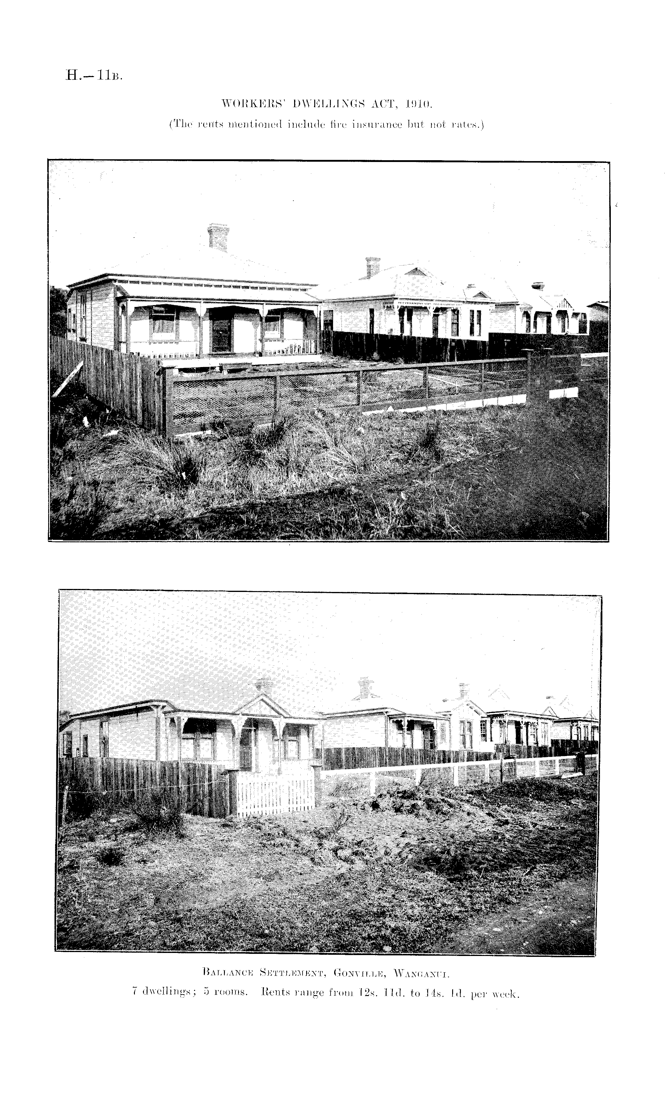 Ballance Settlement, Gonville, Wanganui. 7 dwellings; 5 rooms. Rents range from 12s. 11d. to 14s. 1d. per week.