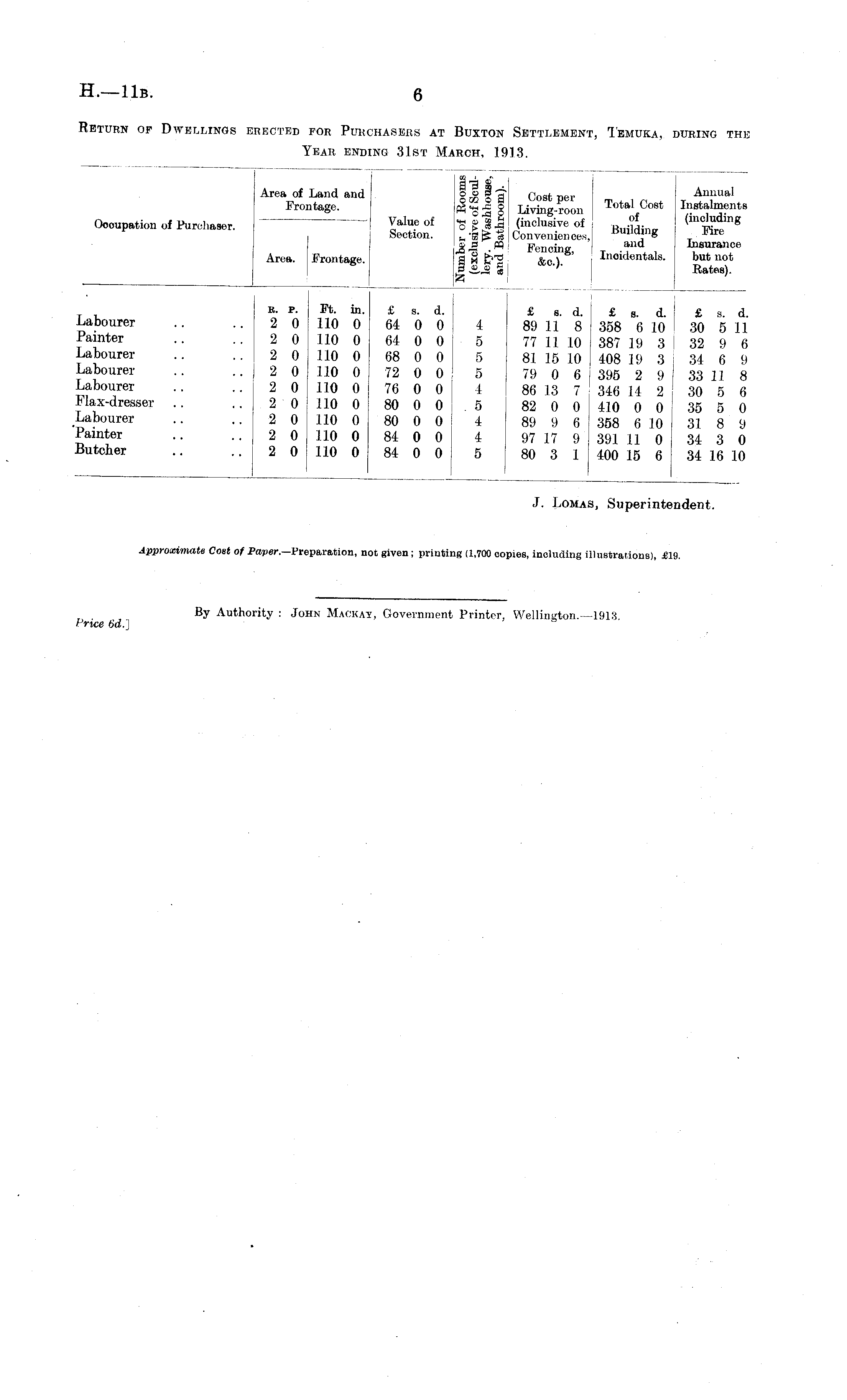Return of Dwellings erected for Purchasers at Buxton Settlement, Temuka, during the Year ending 31st March, 1913.