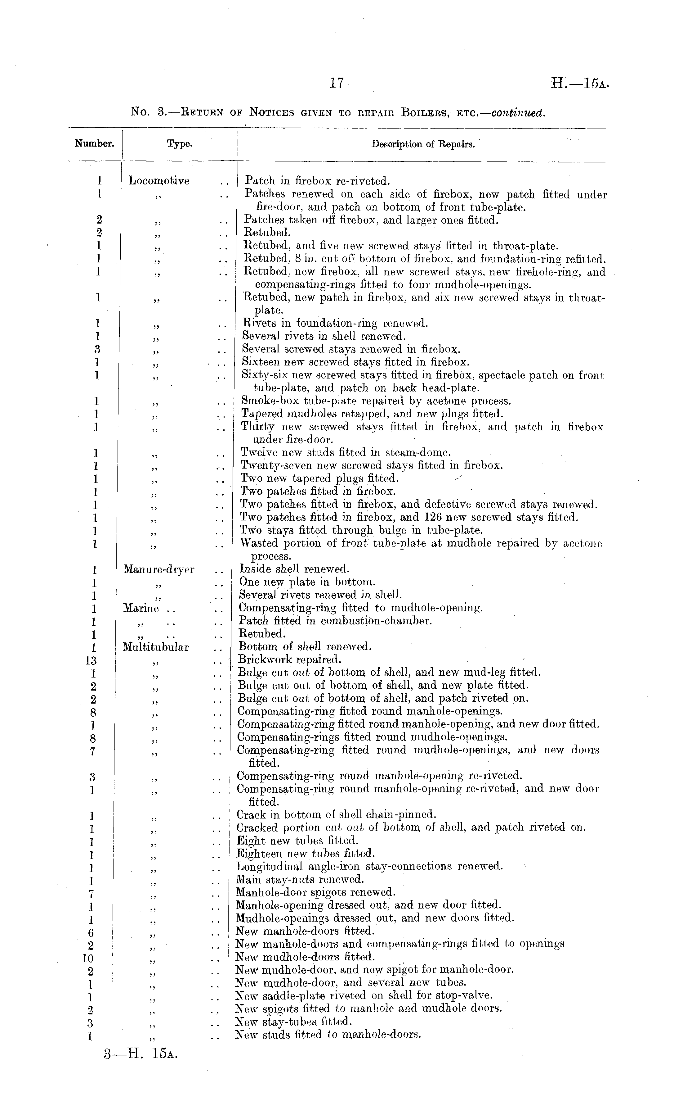 No. 3. —Return of Notices given to repair Boilers, etc. — continued.