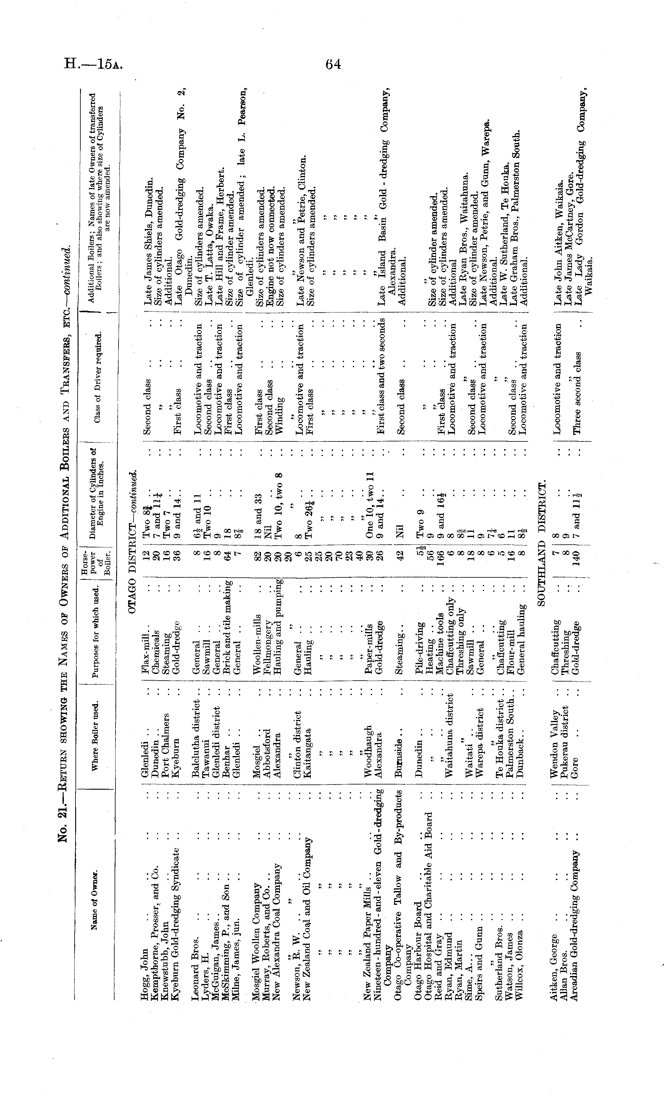 No. 21.—Return showing the Names of Owners of Additional Boilers and Transfers, etc. — continued.
