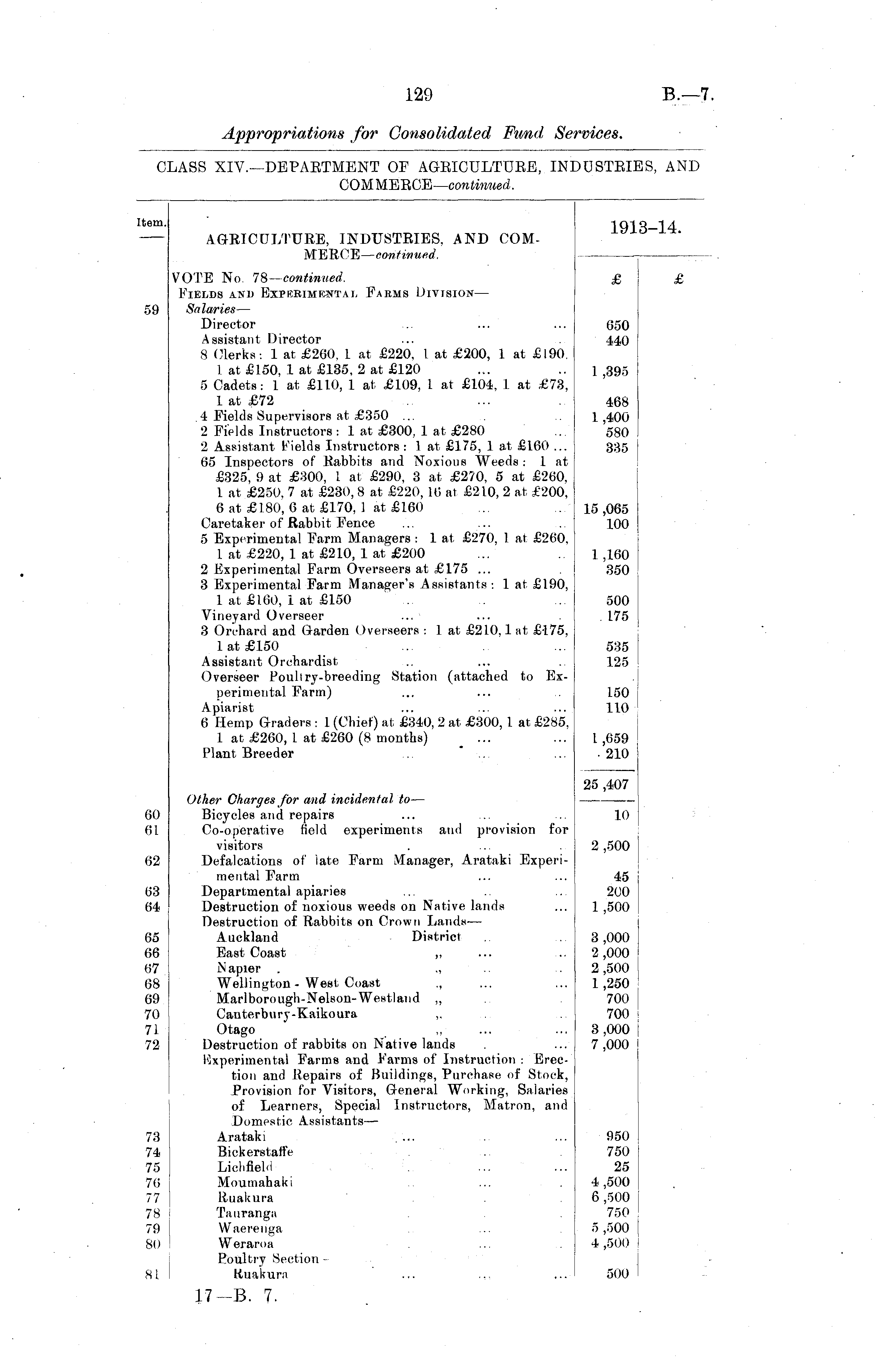 CLASS XIV.—DEPARTMENT OF AGRICULTURE, INDUSTRIES, AND COMMERCE— continued.