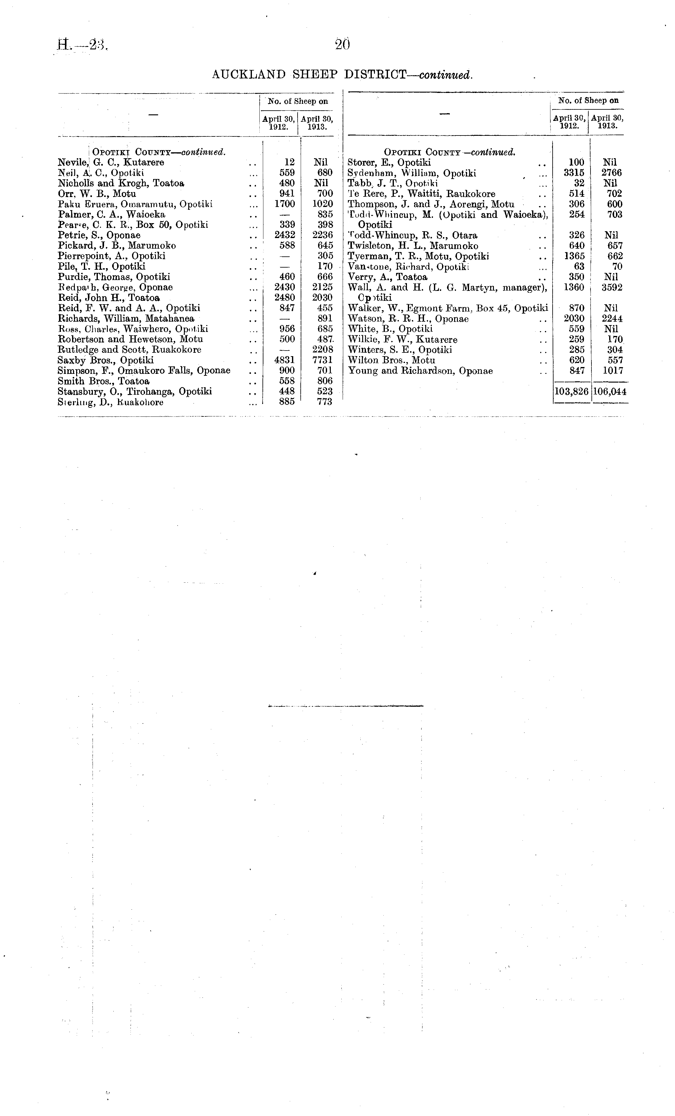 No. of Sheep on April 30, April 30, 1912. 1913. Opotiki County— continued, Revile, G. C, Kutarere feil, A. C, Opotiki <Iicholls and Krogh, Toatoa )rr. W. B., Motu J aku Eruera, Omaramutu, Opotiki Palmer, C. A., Waioeka 'ear-e, C. K. R., Box 50, Opotiki 'etrie, S., Oponae 'ickard, J. B., Marumoko 'ierrepoint, A., Opotiki 5 ile, T. H., Opotiki 'urdie, Thomas, Opotiki led path, Georije, Oponae teid, John H., Toatoa leid, F. W. and A. A., Opotiki tichards, William, Matahanea loss, Charles, Waiwhero, Opotiki lobertson and Hewetson, Motu tutledge and Scott, Ruakokore laxby Bros., Opotiki limpson, F., Omaukoro Falls, Oponae Smith Bros., Toatoa Stansbury, O., Tirohanga, Opotiki Sterling, D., Ruakohore 12 559 480 941 1700 339 2432 588 460 2430 2480 847 Nil 680 Nil 700 1020 835 398 2236 645 305 170 666 2125 2030 455 891 685 487. 2208 7731 701 806 523 773 956 500 4831 900 558 448 885