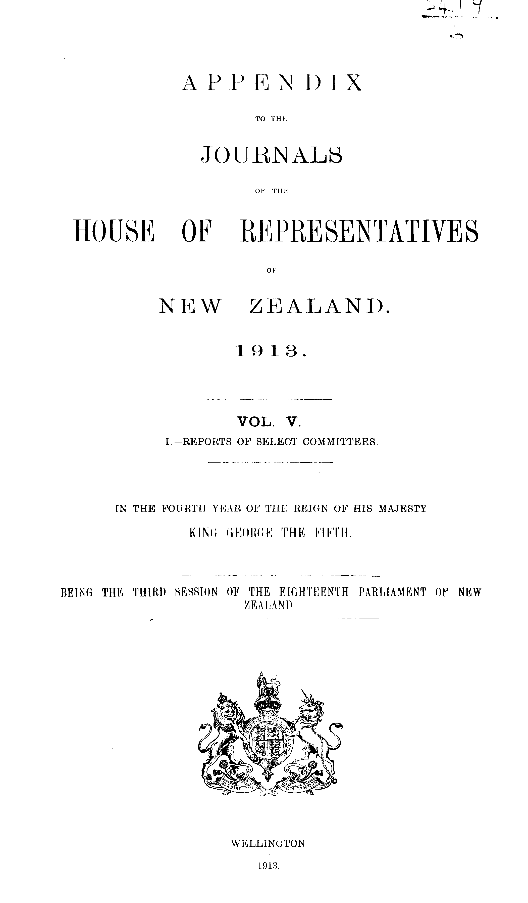 APPENDIX TO THE JOURNALS OF THE HOUSE OF REPRESENTATIVES OF NEW ZEALAND. 1913.