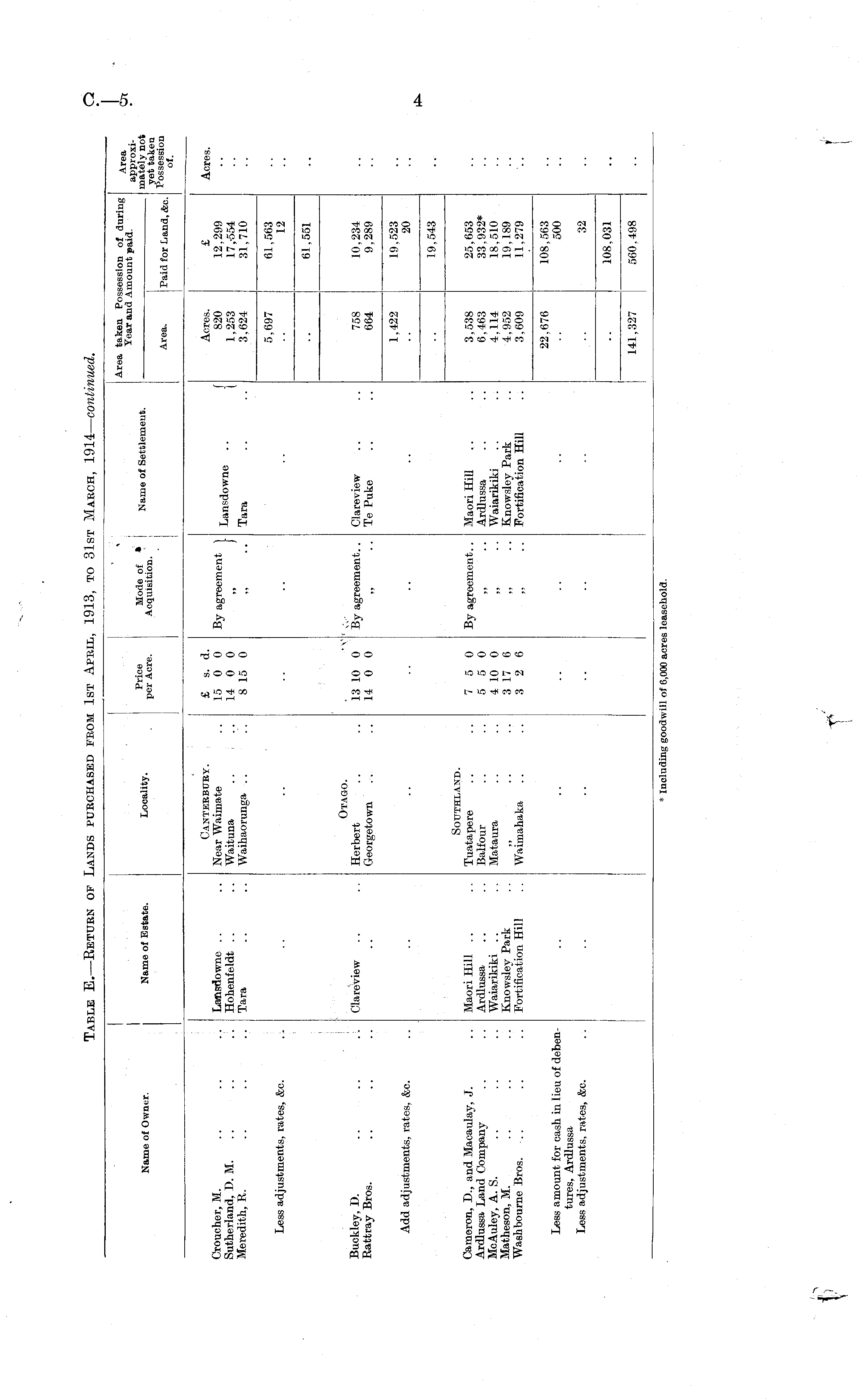 Table E.—Return of Lands purchased from 1st April, 1913, to 31st March, 1914— continued.