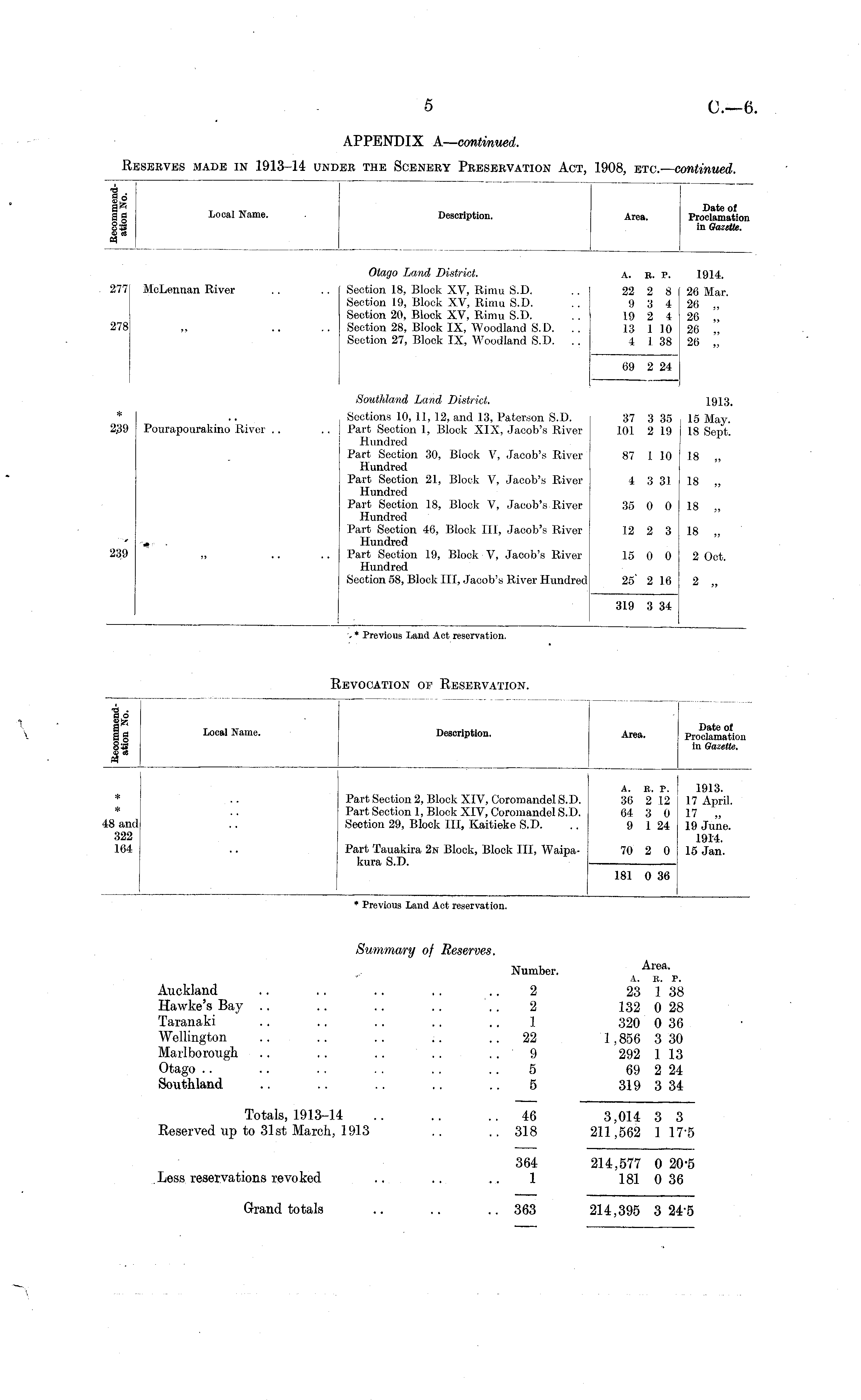 APPENDIX A—continued. Reserves made in 1913-14 under the Scenery Preservation Act, 1908, etc.— continued.