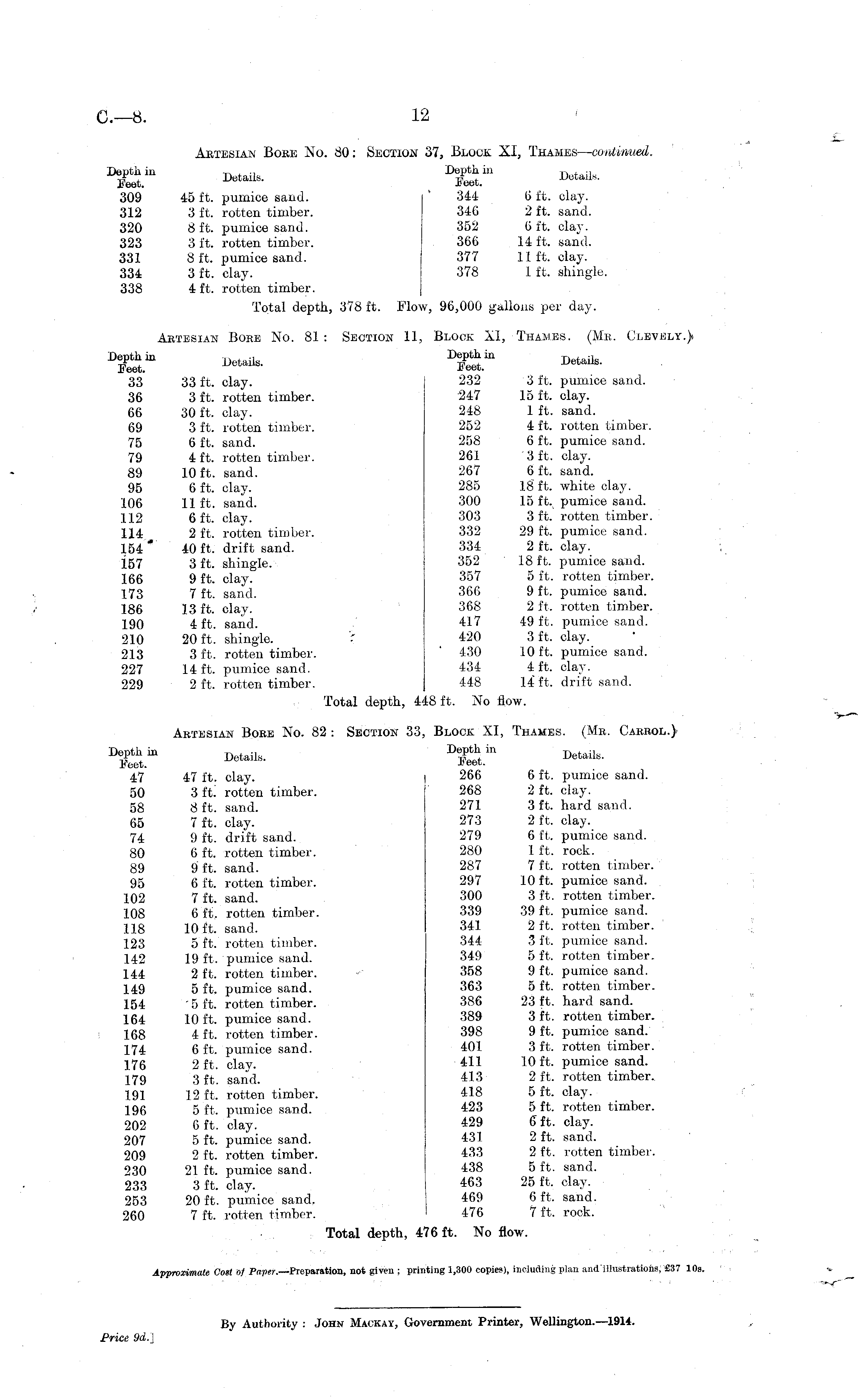 Total depth, 378 ft. Flow, 96,000 gallons per day. Artesian Bore No. 81 : Section 11, Block XI, Thames. (Mr. Clevely.)