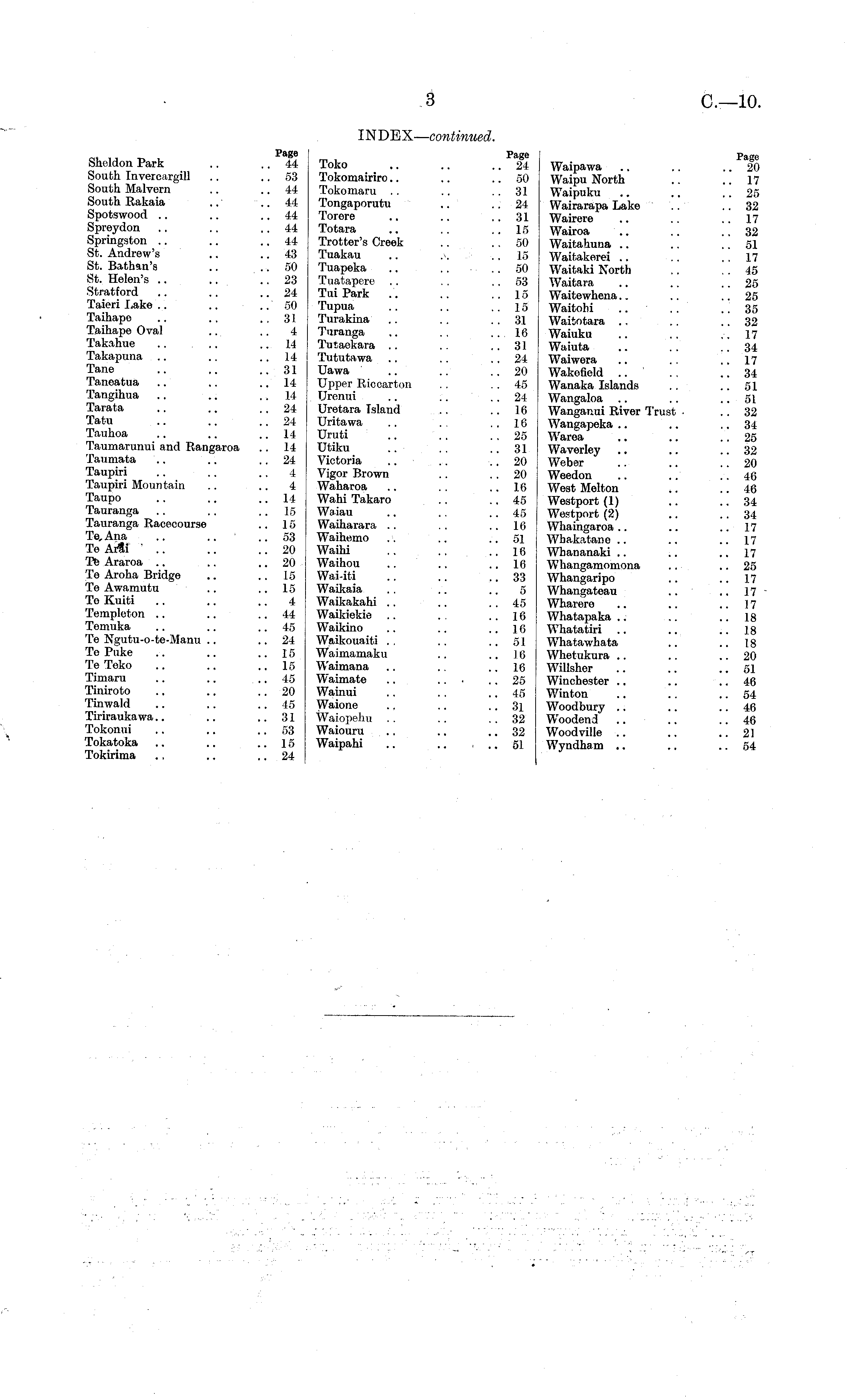 INDEX— continued. Page Page Page Sheldon Park .. .. 44 Toko .. .. .. 24 Waipawa .. .. 20 South Invercargill .. ..53 Tokomairiro.. .. ..50 Waipu North .. .. 17 South Malvern .. .. 44 Tokomaru .. .. .. 31 Waipuku .. '.. '.'.25 South Rakaia .. .. 44 Tongaporutu .. .. 24 Wairarapa Lake .. '.'. 32 Spotswood .. .. ..44 Torere .. .. ..31 Wairere .. 17 Spreydon .. .. ..44 Totara .. .. ..15 Wairoa .. 32 Spnngston .. .. .. 44 Trotter's Creek .. .. 50 Waitahuna .. 51 St. Andrew's .. .. 43 Tuakau .. .\ .. 15 Waitakerei .. 17 St. Bathan's .. .. 50 Tuapeka .. .. .. 50 Waitaki North .. .. 45 St. Helen's .. .. .. 23 Tuatapere .. . . .. 53 Waitara .. 25 Stratford .. .. ..24 Tui Park .'. .. ..15 Waitewhena.. .. ..25 TaienLake.. .. ..50 Tupua .. .. ..15 Waitohi .. .. .35 Taihape .. ~ ..31 Turakina .. .. ..31 Waitotara ~ .. ..32 Taihape Oval .. .. 4 Turanga ~ .. ..16 Waiuku .. .. 17 Takahue .. .. ..14 Tutaekara .. .. ..31 Waiuta '.'. '.'. ..34 Takapuna .. ~ .. 14 Tututawa .. .. .. 24 Waiwera .. . . 17 Tane .. .. ..31 Uawa .. .. ..20 Wakefield .. .. . '. 34 Taneatua .. .. ..14 Upper Ric carton .. ..45 Wanaka Islands .. ..51 Tangihua .. .. ..14 Urenui .. .. ..24 Wangaloa .. .. ..51 Tarata • ■ • • .. 24 Uretara Island .. .. 16 Wanganui River Trust -.. 32 Tatu •• •• ..24 Uritawa .. .. ..16 Wangapeka .. .. ..34 Tauhoa .. .. ..14 Uruti .. .. ..25 Warea .. .. ..25 Taumarunui and Rangaroa .. 14 Utiku .. .. .. 31 Waverley .. .. .. 32 Taumata .. .. .. 24 Victoria .. .. .. 20 Weber .'. .. '.'. 20 Taupiri .. .. ..4 Vigor Brown .. ..20 Weedon .. '.'. .'. 46 Taupiri Mountain .. .. 4 Waharoa .. .. .. 16 West Melton .. .. 46 Tau P° • • • • .. 14 Wahi Takaro .. .. 45 Westport (1) .. .. 34 Tauranga .. .. .. 15 Waiau .. ~ .. 45 Westport (2) .. .. 34 Tauranga Racecourse .. 15 Waiharara .. .. ..16 Whaingaroa.. .. .. 17 Te Ana •• •• ..53 Waihemo .. .. ..51 WhakaTtane .. .. .. 17 Te Aral .. .. ..20 Waihi .. .. ..16 Whananaki .. .. ..17 Te Araroa .. .. .. 20 Waihou .. .. .. 16 Whangamomona .. .. 25 Te Aroha Bridge .. .. 15 Wai-iti .. .. .. 33 Whangaripo .. .. 17 Te Awamutu .. ..15 Waikaia .. .. ..5 Whangateau .. ..17 Te Kuiti .. .. .. 4 Waikakahi .. .. . . 45 Wharere .. .. ..17 Templeton .. .. ..44 Waikiekie .. ~ ..16 Whatapaka .. .. ..18 Temuka .. .. ..45 Waikino .. .. ..16 Whatatiri .. .. ..18 Te Ngutu-o-te-Manu .. .. 24 Waikouaiti .. .. ..51 Whatawhata .. ..18 Te Puke .. .. ..15 Waimamaku .. ..16 Whetukura .. .. ..20 Te Teko .. .. ..15 Waimana .. .. ..16 Willsher .. .. ..51 Timaru .. .. .. 45 Waimate .. ... .. 25 Winchester .. .. . '. 46 Tiniroto .. .. .. 20 Wainui .. .. .. 45 Winton .. .. .. 54 Tinwald .. .. .. 45 Waione ... ... .. 3l Woodbury .. .. .. 46 Tiriraukawa.. .. ..31 Waiopehu .. .. ..32 Woodend .. .. ..46 Tokonui .. .. .. 53 Waiouru .. .. .. 32 Woodville .. .. .. 21 Tokatoka .. .. ..15 Waipahi .. .. ..51 Wyndham .. .. ..54 Tokirima .. .. .. 24