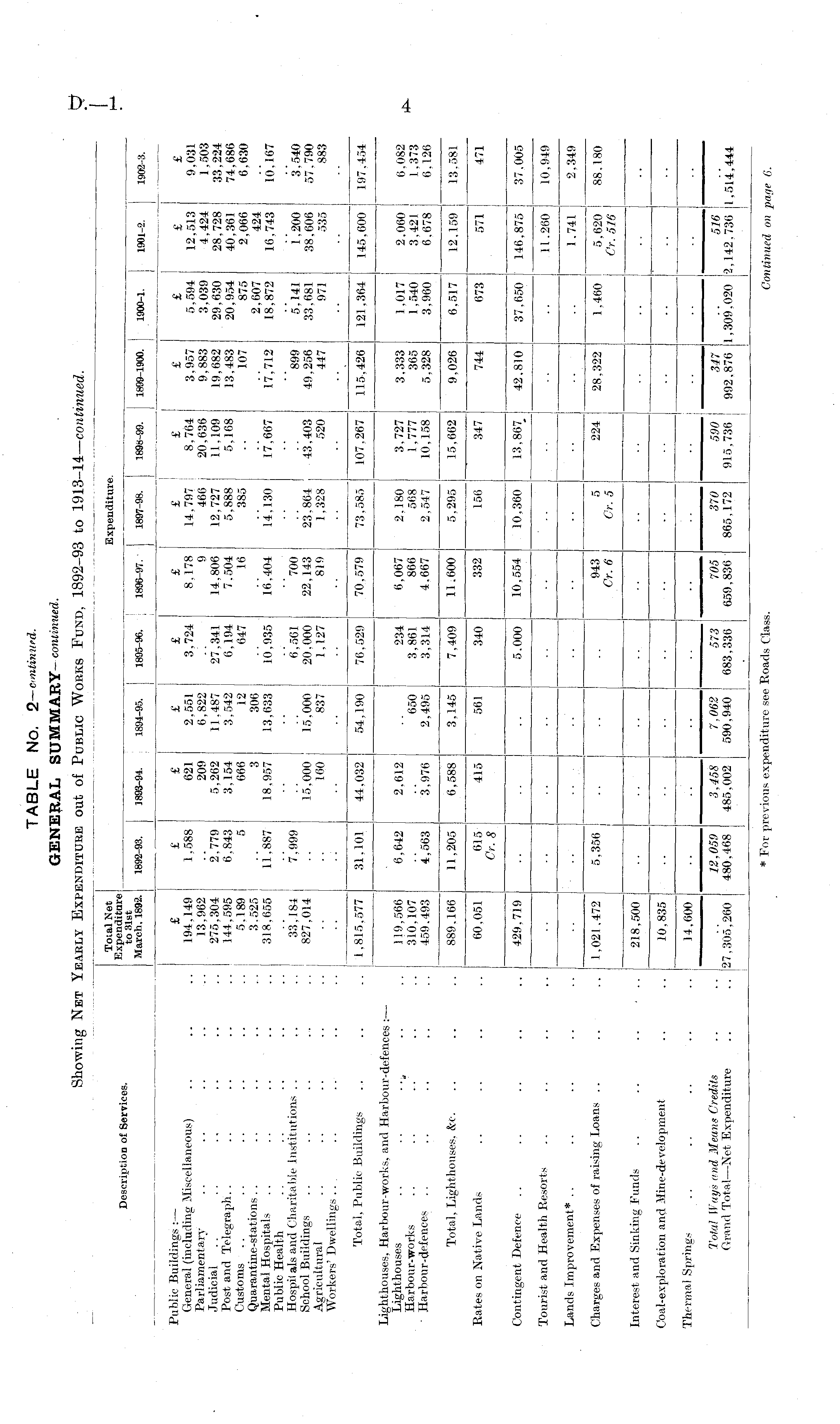 TABLE No. 2—continued. GENERAL SUMMARY —continued. Showing Net Yearly Expenditure out of Public Works Fund, 1892-93 to 1913-14— continued.