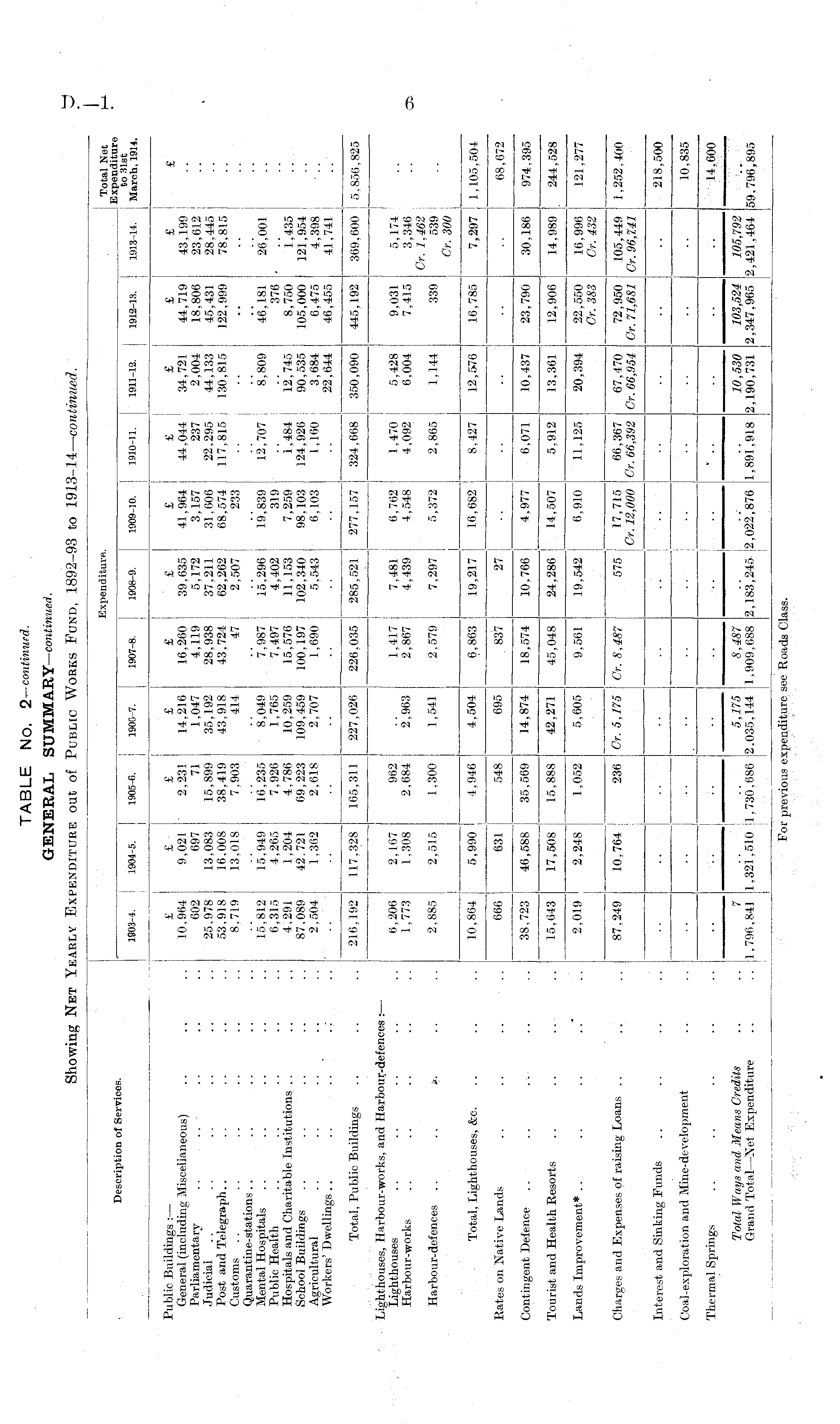 TABLE No. 2—continued. GENERAL SUMMARY —continued. Showing Net Yearly Expenditure out of Public Works Fund, 1892-93 to 1913-14— continued.