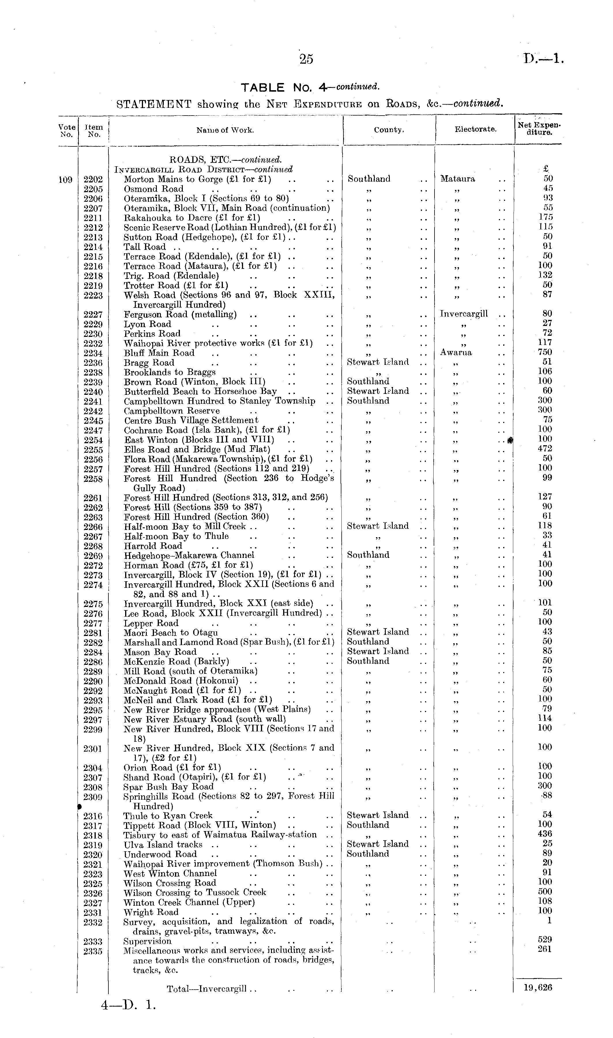 TABLE No. 4— continued. STATEMENT showing the Net Expenditure on Roads, &c. — continued.