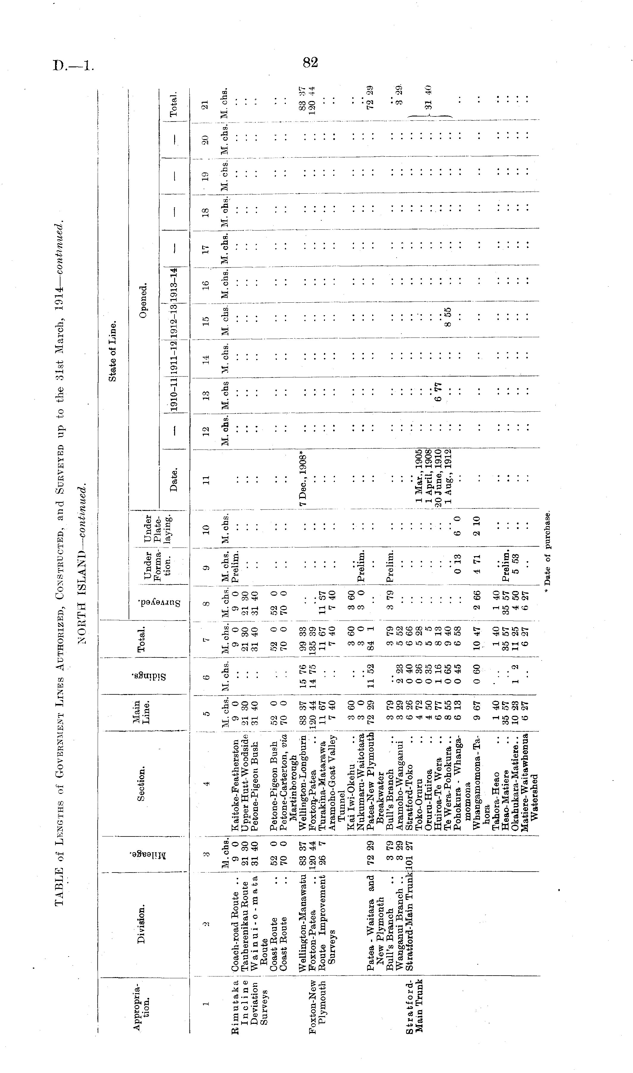 TABLE of Lengths of Government Lines Authorized, Constructed, and Surveyed up to the 31st March, 1914— continued. NORTH ISLAND— continued.