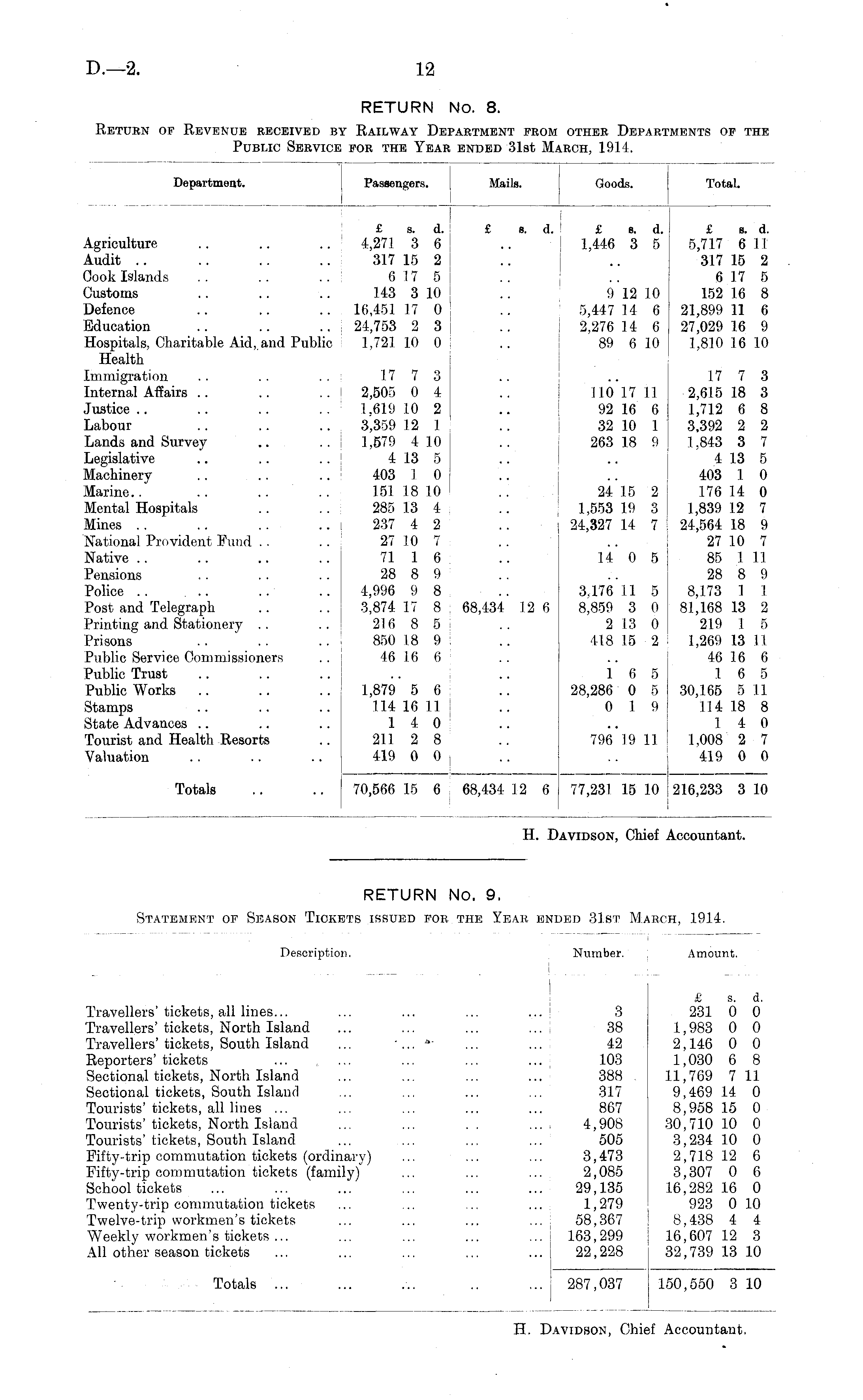 RETURN No. 9. Statement of Season Tickets issued for the Year ended 31st March, 1914.