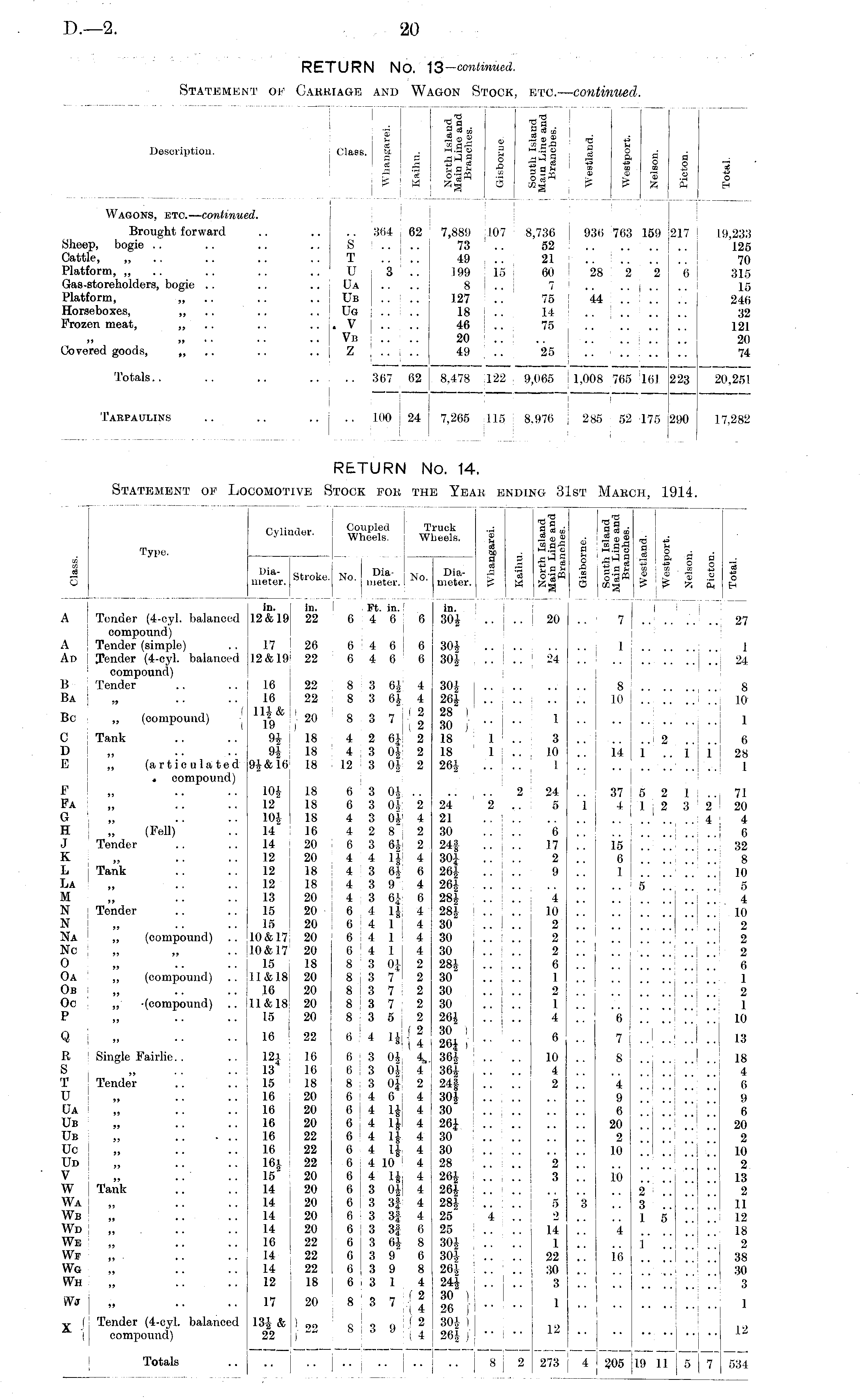 RETURN No. 14. Statement of Locomotive Stock for the Year ending 31st March, 1914.