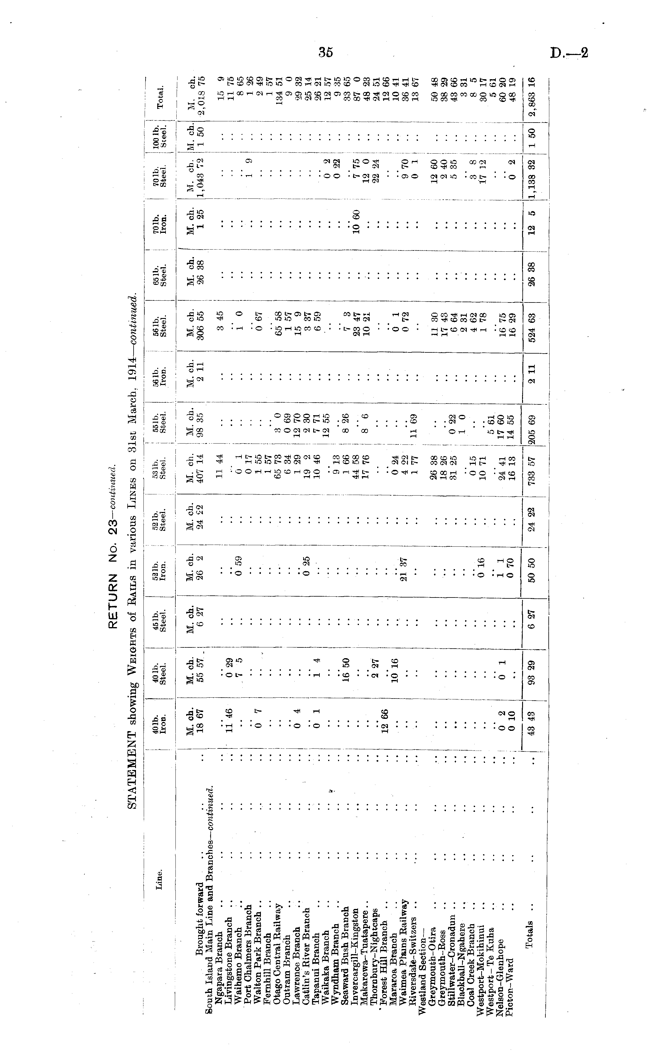 RETURN No. 23— continued. STATEMENT showing Weights of Rails in various Lines on 31st March, 1914— continued.