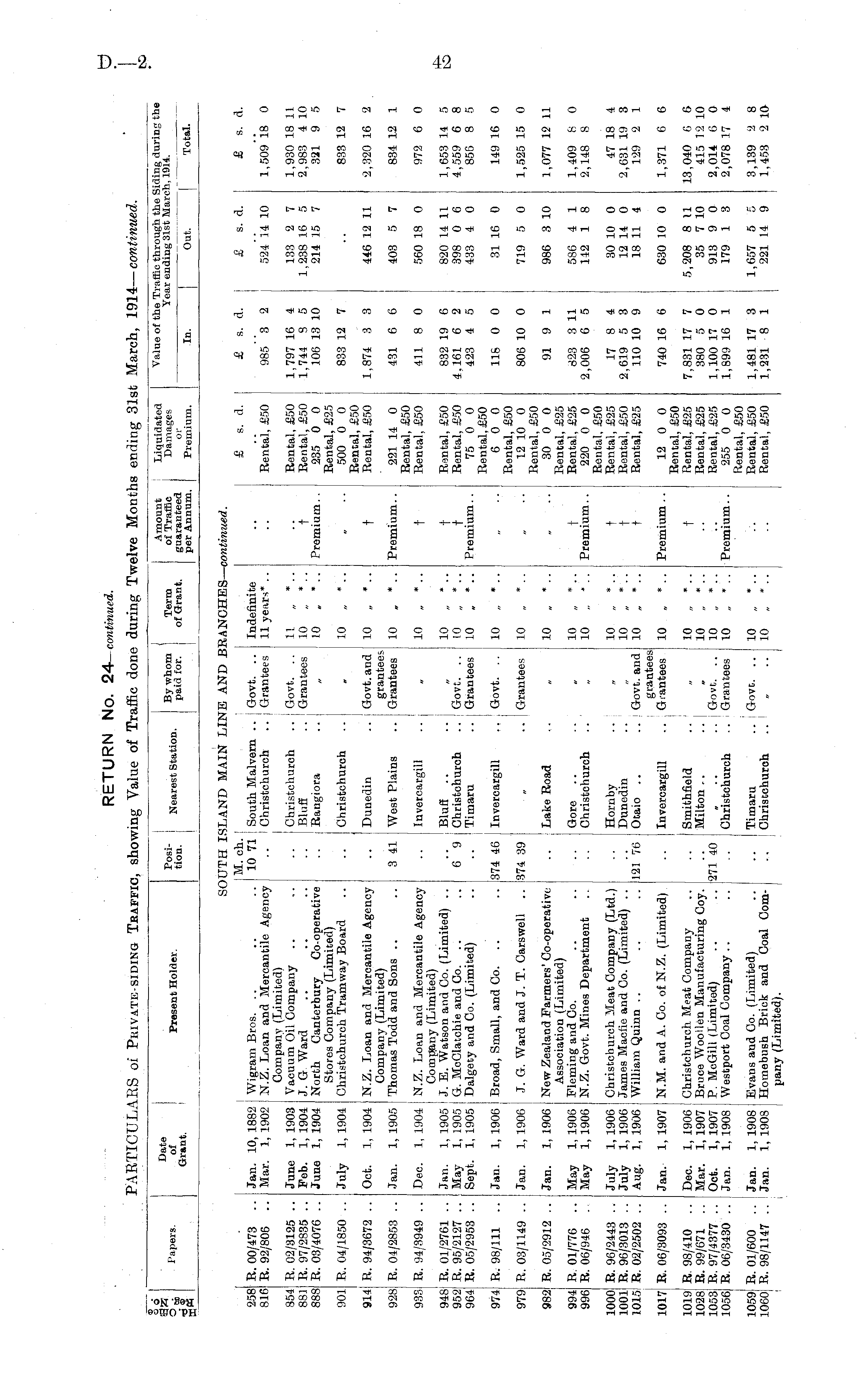 RETURN No. 24—continued. PARTICULARS of Private-siding Traffic, showing Value of Traffic done during Twelve Months ending 31st March, 1914— continued.
