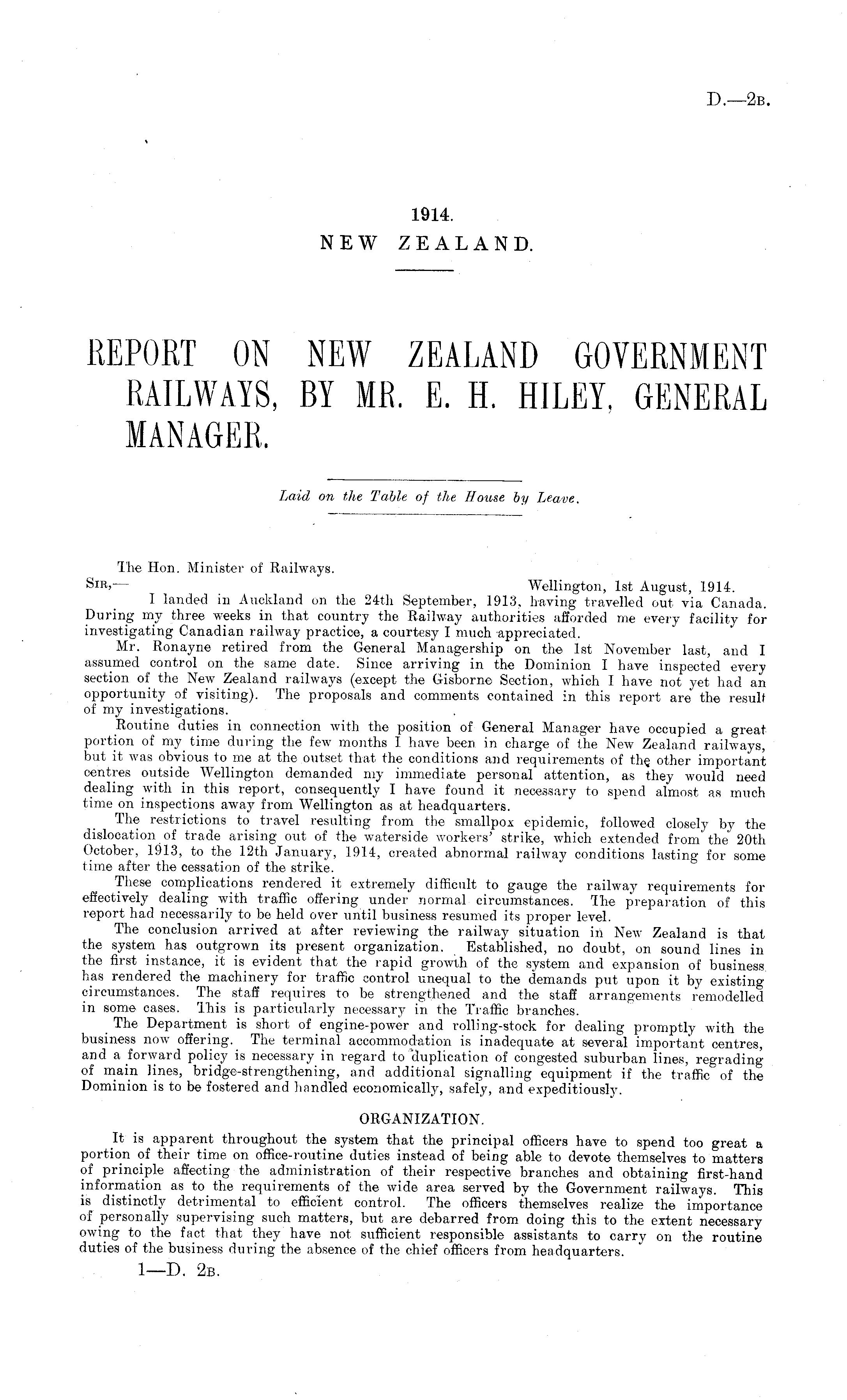 REPORT ON NEW ZEALAND GOVERNMENT RAILWAYS, BY MR. E. H. HILEY, GENERAL MANAGER.
