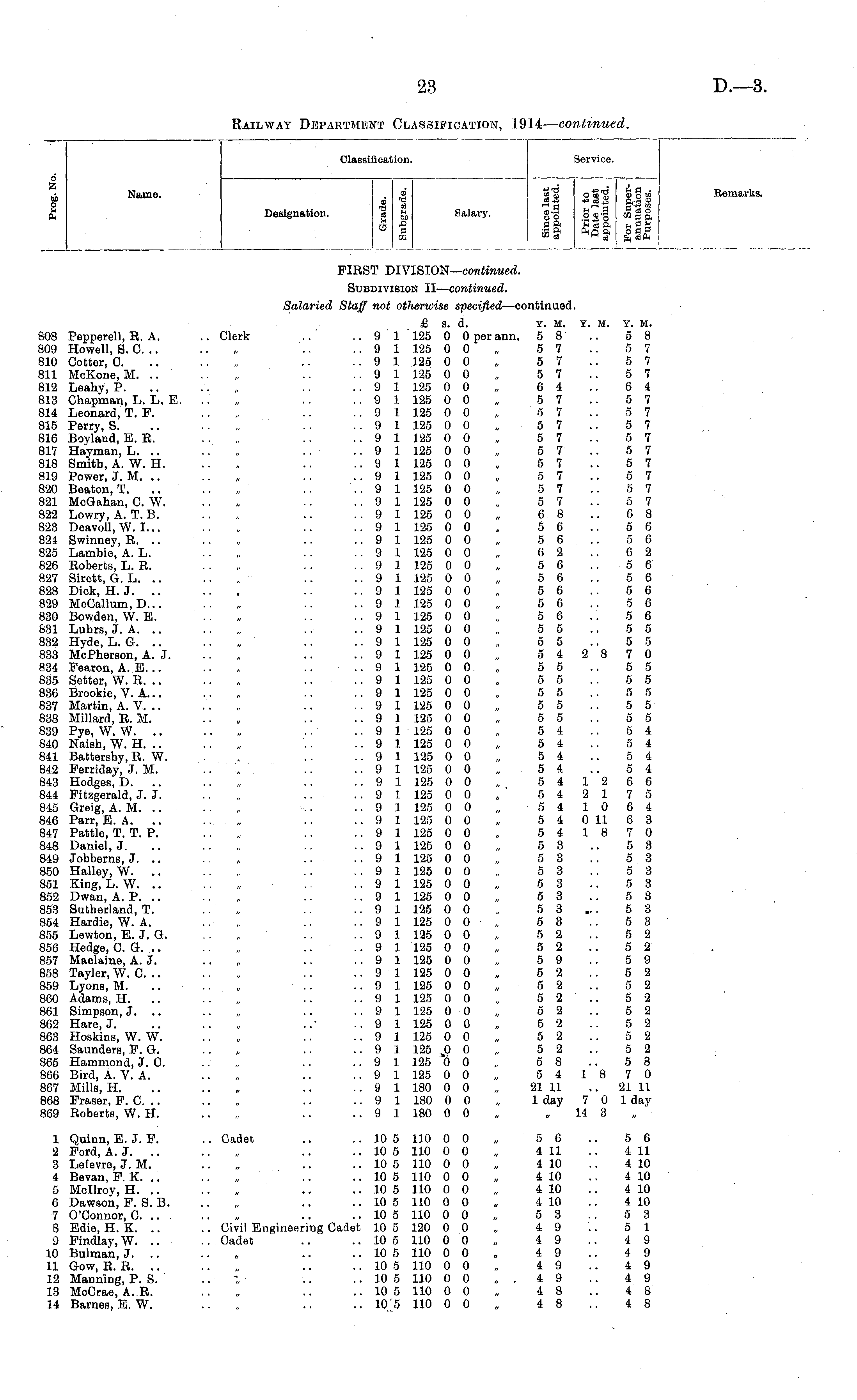 Railway Department Classification, 1914— continued.
