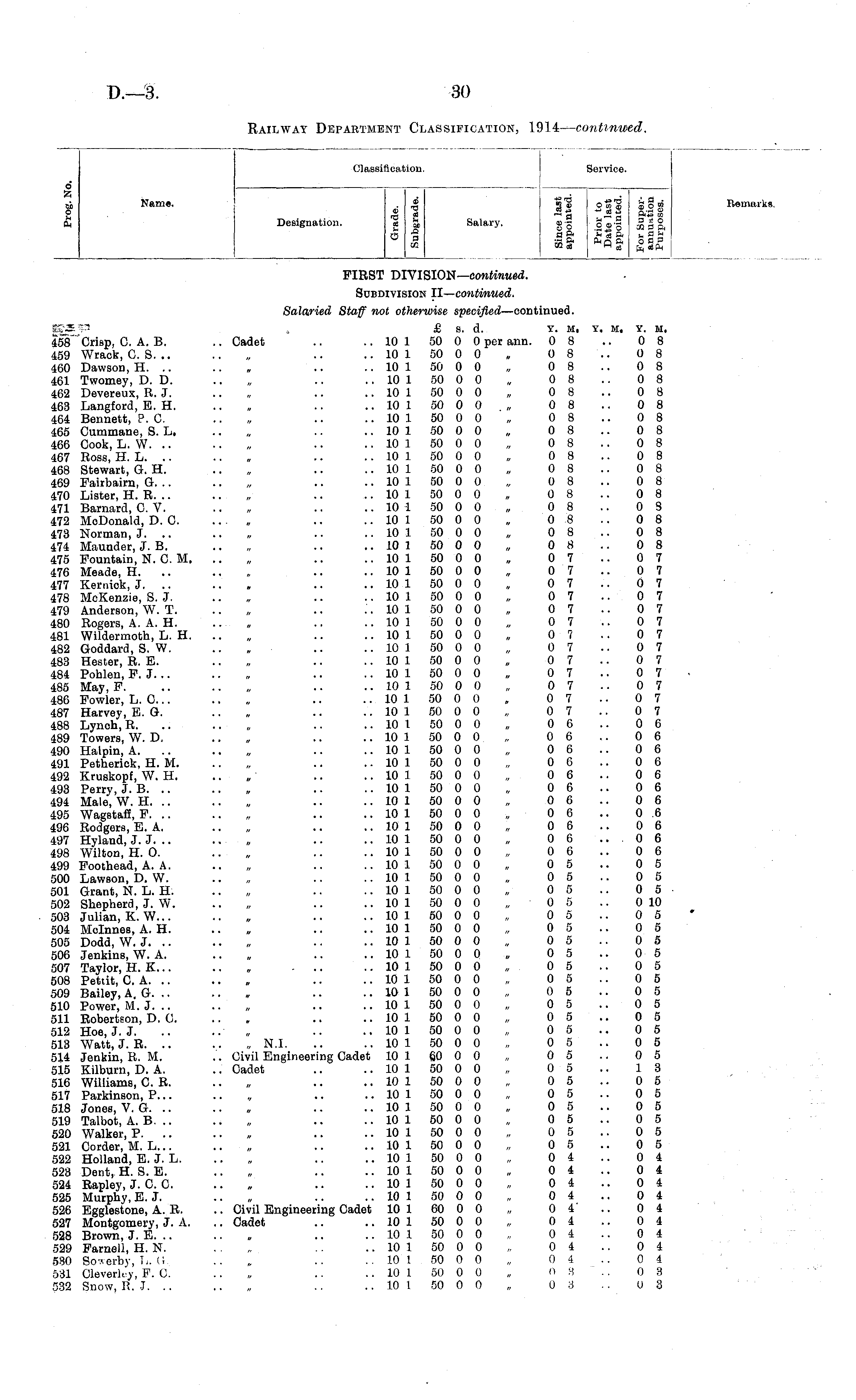 Railway Department Classification, 1914— continued.