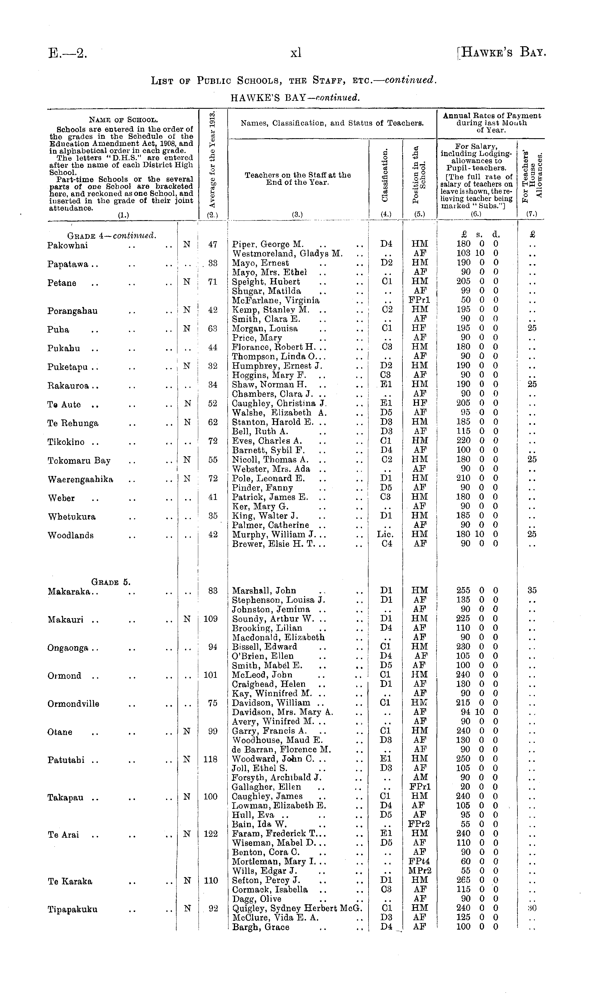 List of Public Schools, the Staff, etc. — continued. HAWKE'S BAY— continued.