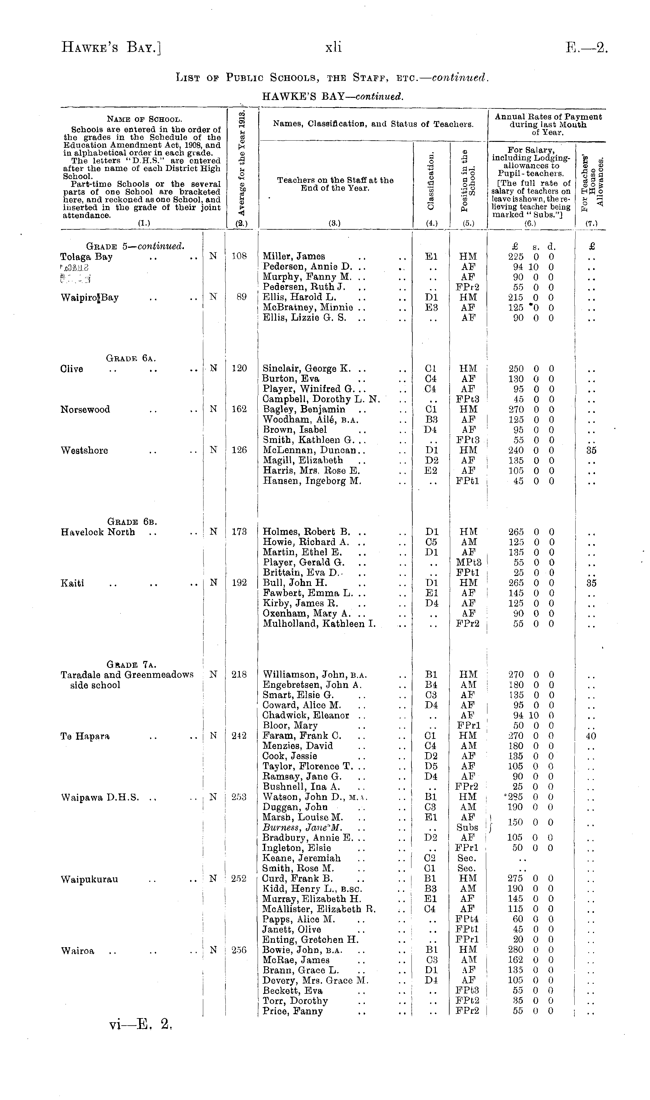 List of Public Schools, the Staff, etc. — continued. HAWKE'S BAY— continued.
