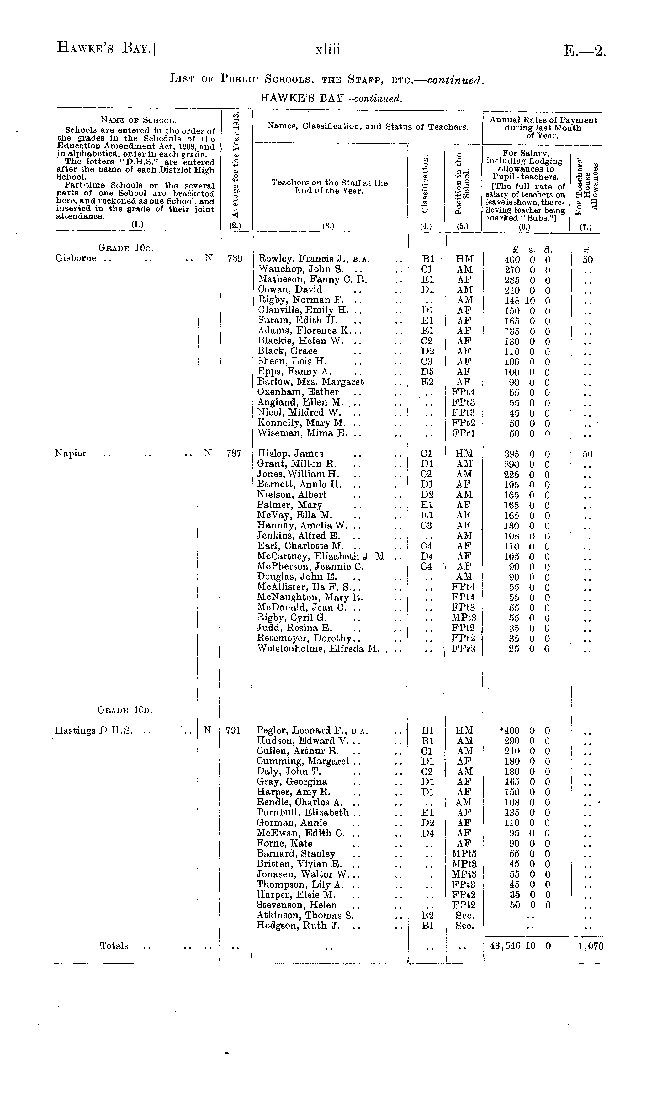 List of Public Schools, the Staff, etc. — continued. HAWKE'S BAY— continued.