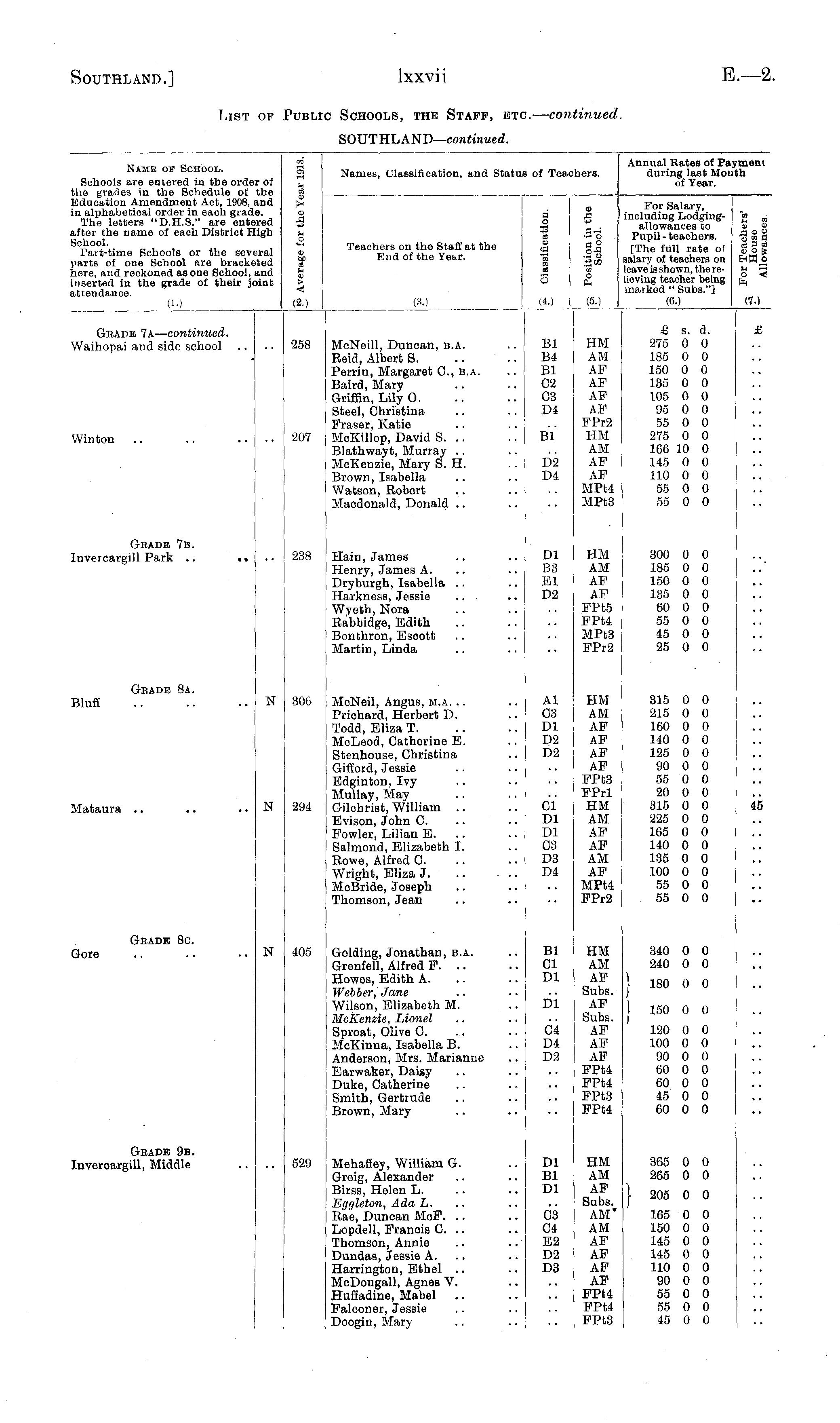 List of Public Schools, the Staff, etc. — continued. SOUTHLAND— continued.