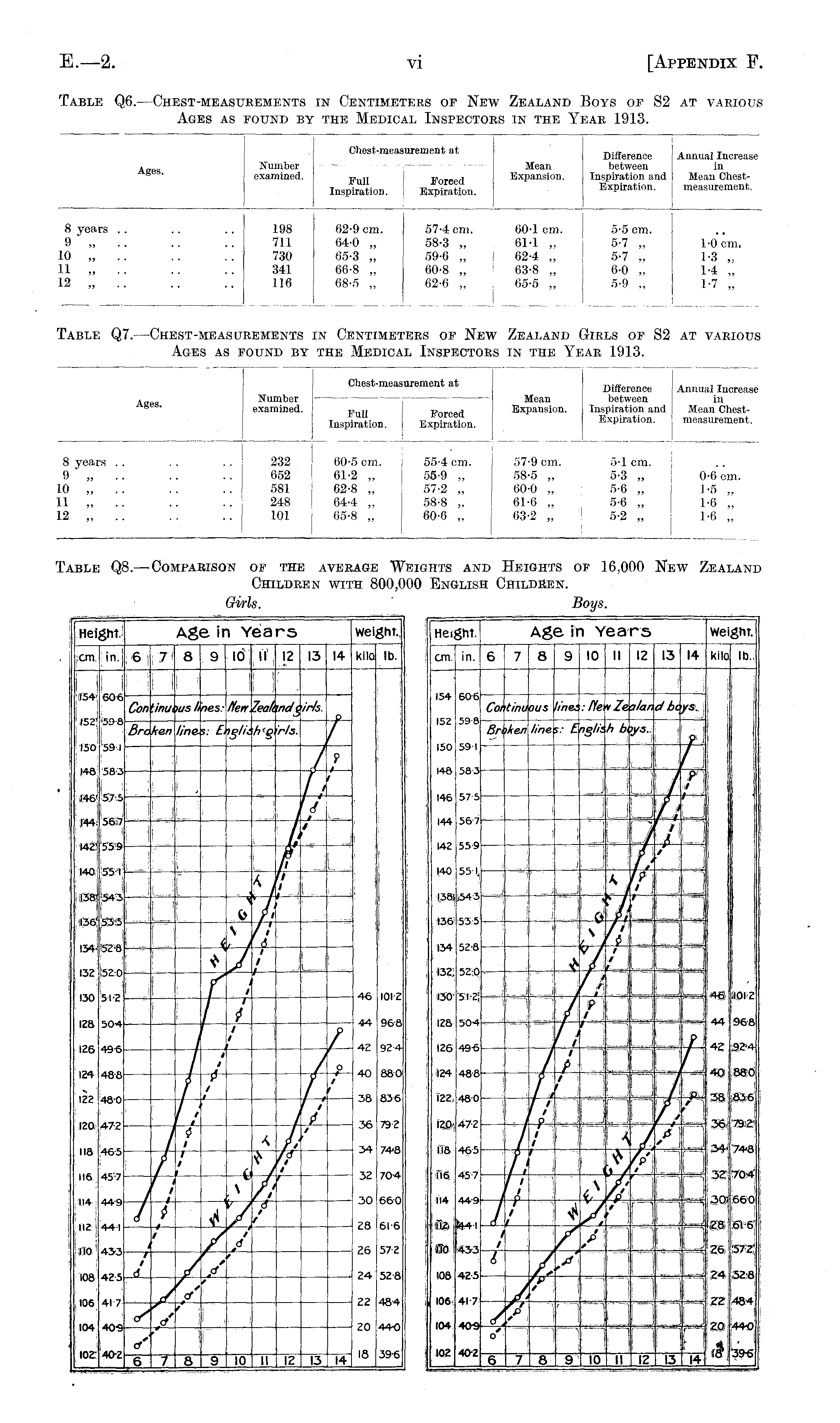 Table Q8. —Comparison of the average Weights and Heights of 16,000 New Zealand Children with 800,000 English Children.