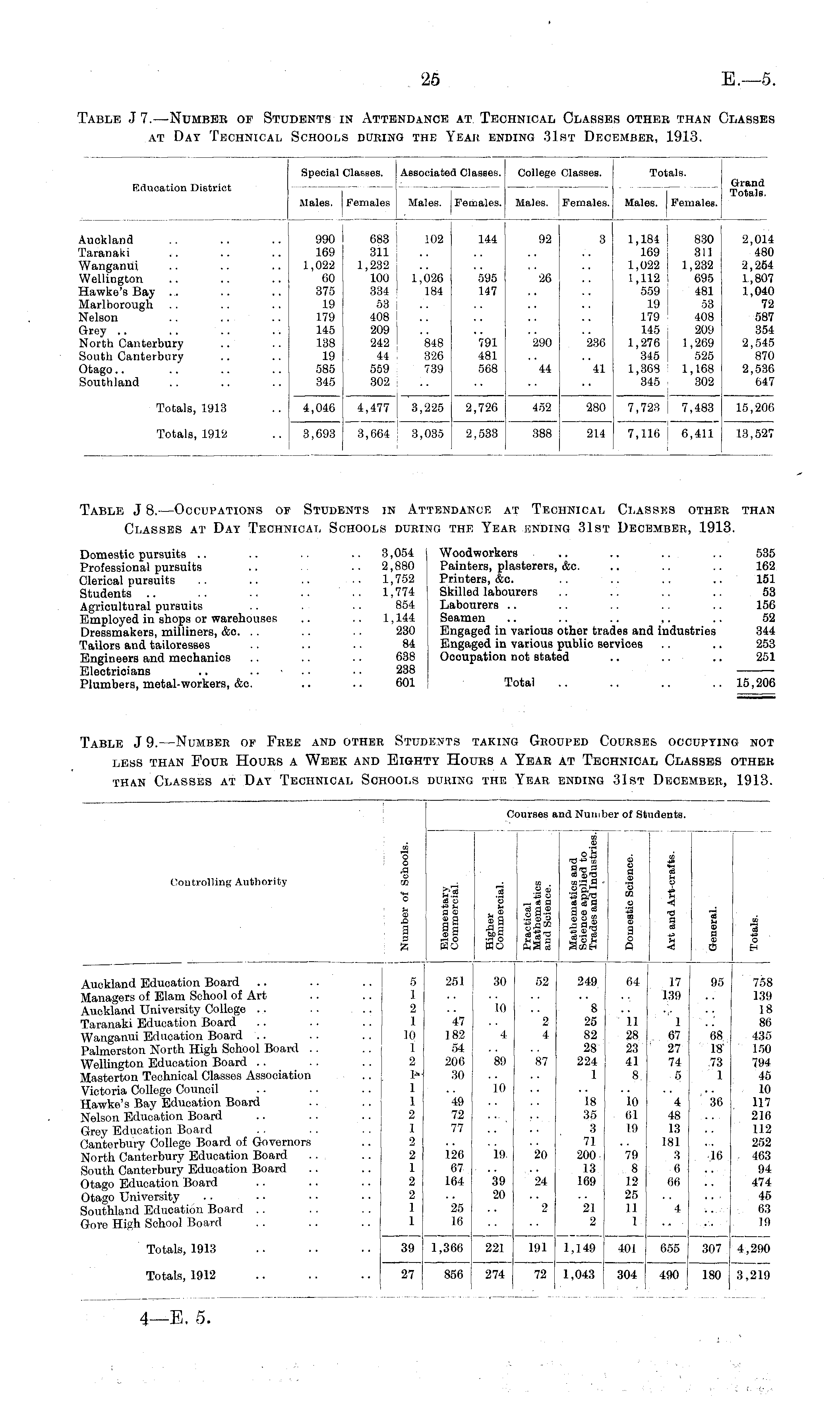 Table J 7. —Number of Students in Attendance at Technical Classes other than Classes at Day Technical Schools during the Year ending 31st December, 1913.
