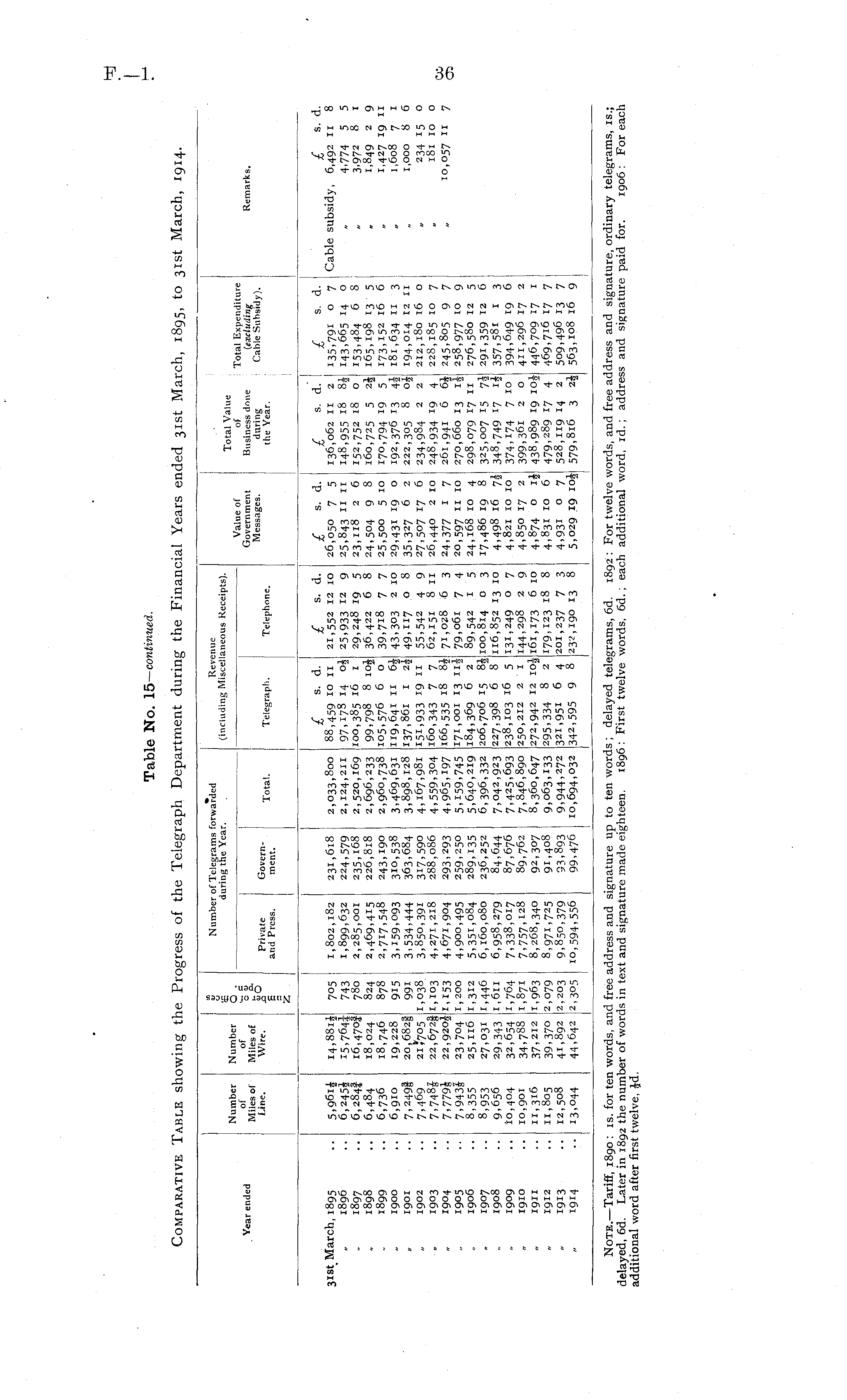 Table No. 15— continued. Comparative Table showing the Progress of the Telegraph Department during the Financial Years ended 31st March, 1895, to 31s t March, 1914.